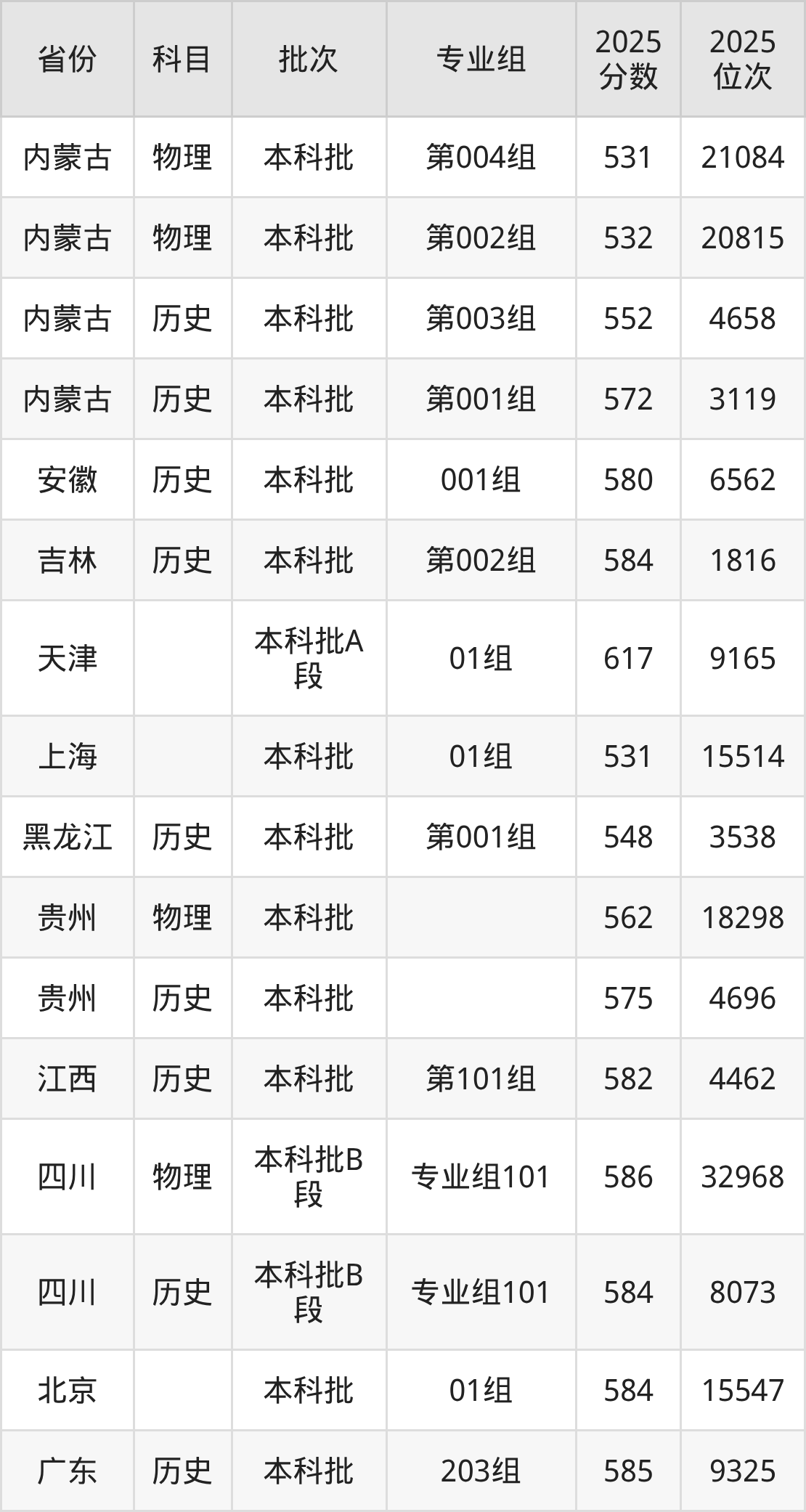 2025年投档录取最低分为513分,录取最低位次为1501名。