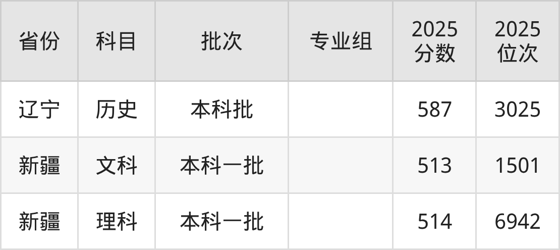2025年投档录取最低分为514分,录取最低位次为6942名。