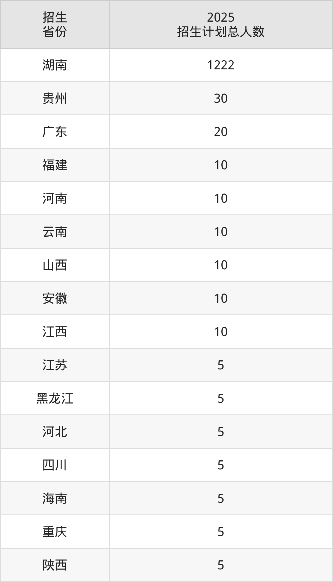 2025年湖南安全技术职业学院面向全国18个省市开展专科招生;招生专业共21个,招生人数共1377人。2025年在湖南省招生计划总人数是1222人,其中,湖南安全技术职业学院在湖南省招生人数最多的是安全技术与管理。湖南安全技术职业学院在各省具体招生人数情况如下表。