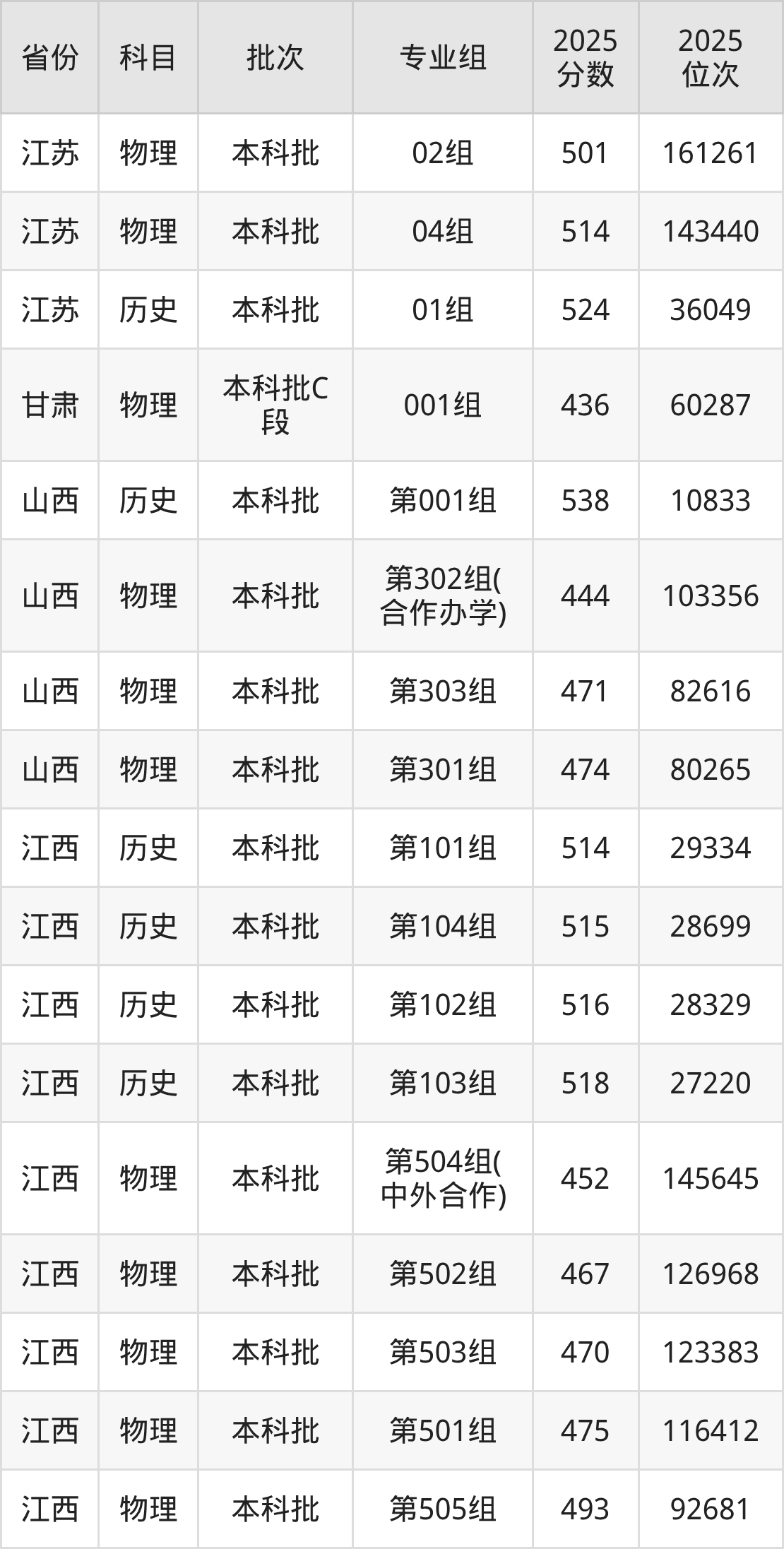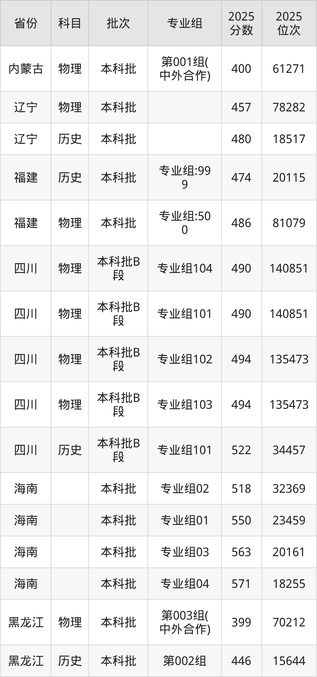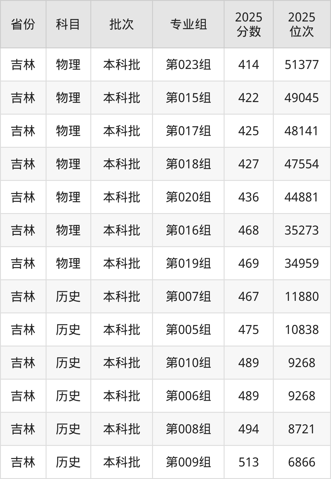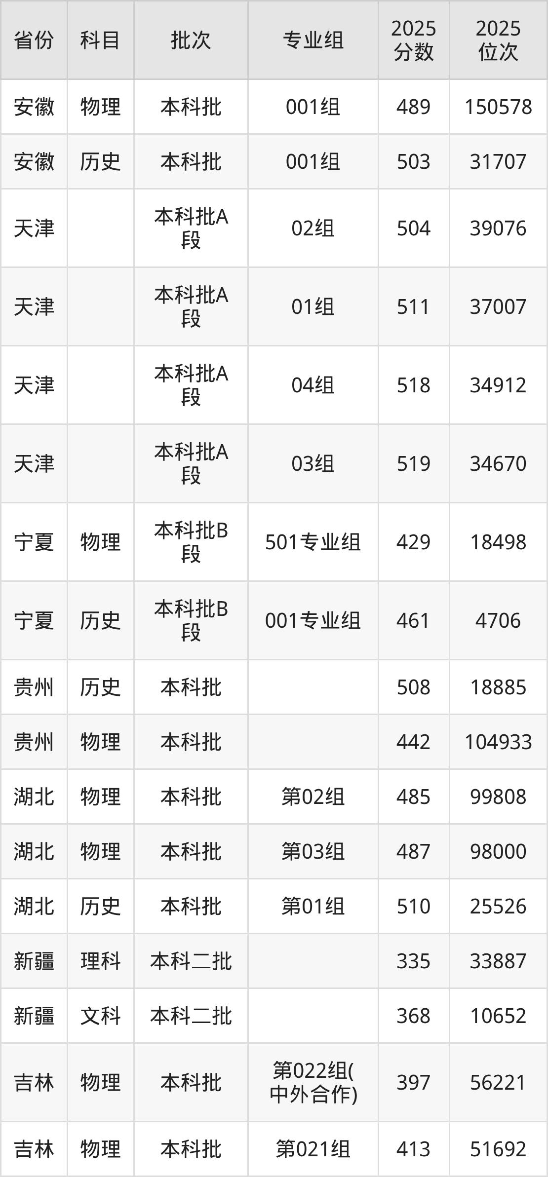 2025年在本科物理类进行招生,各专业组分数线详情如下: