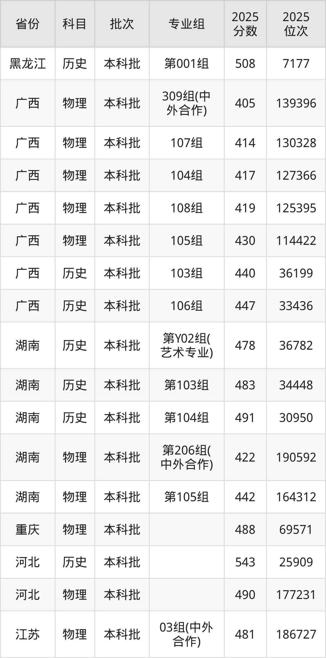 通化师范学院03组(中外合作办学):2025年投档录取最低分为481分,录取最低位次为186727名。