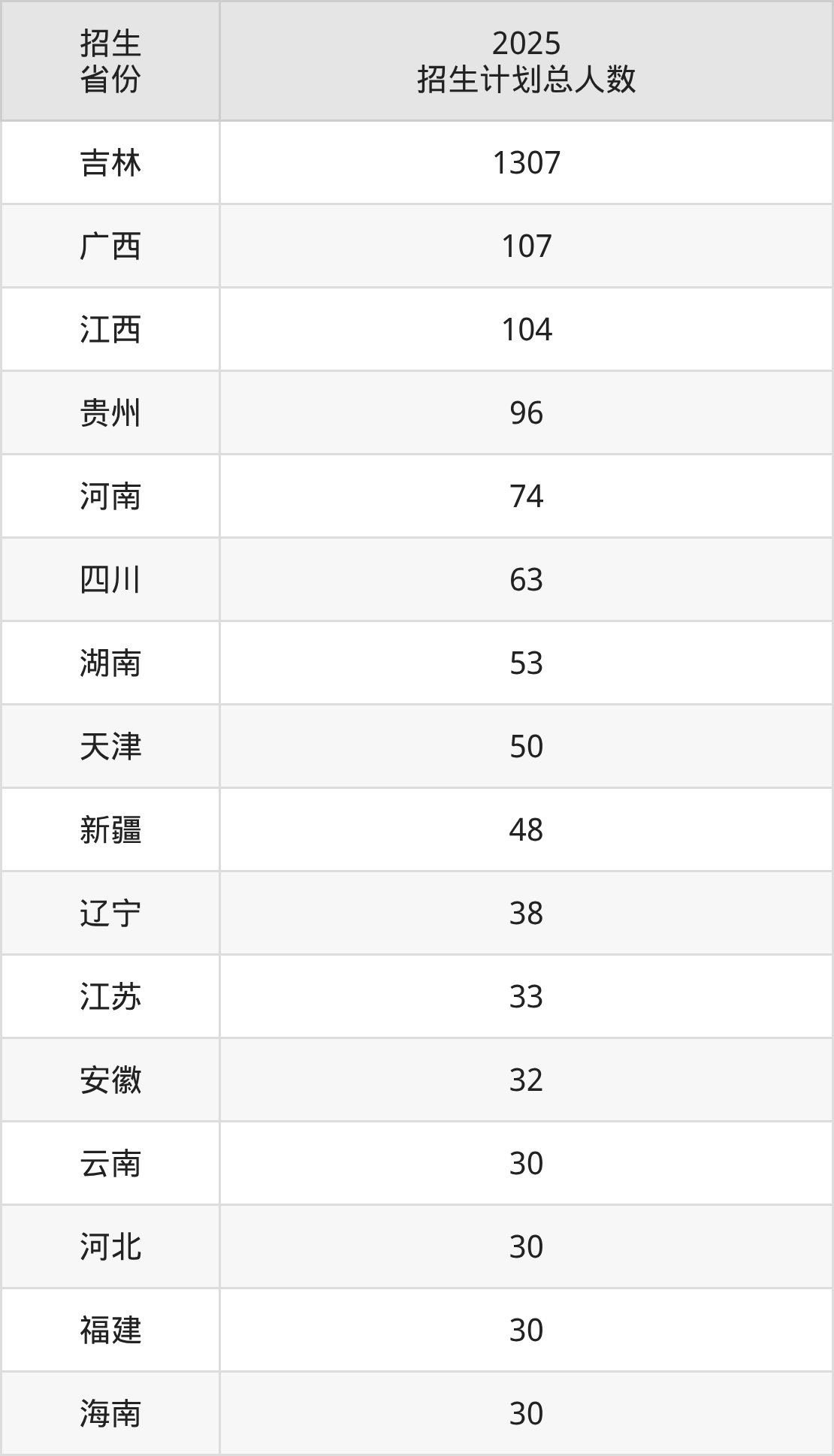 2025年通化师范学院面向全国25个省市开展本科招生;招生专业共31个,招生人数共2183人。