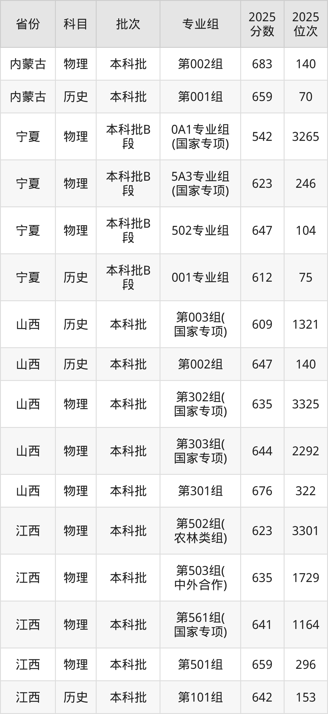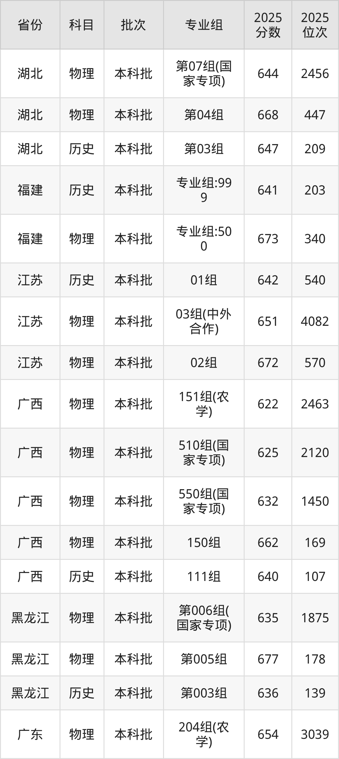 浙江大学008专业组(国家专项计划):2025年投档录取最低分为635分,录取最低位次为728名。