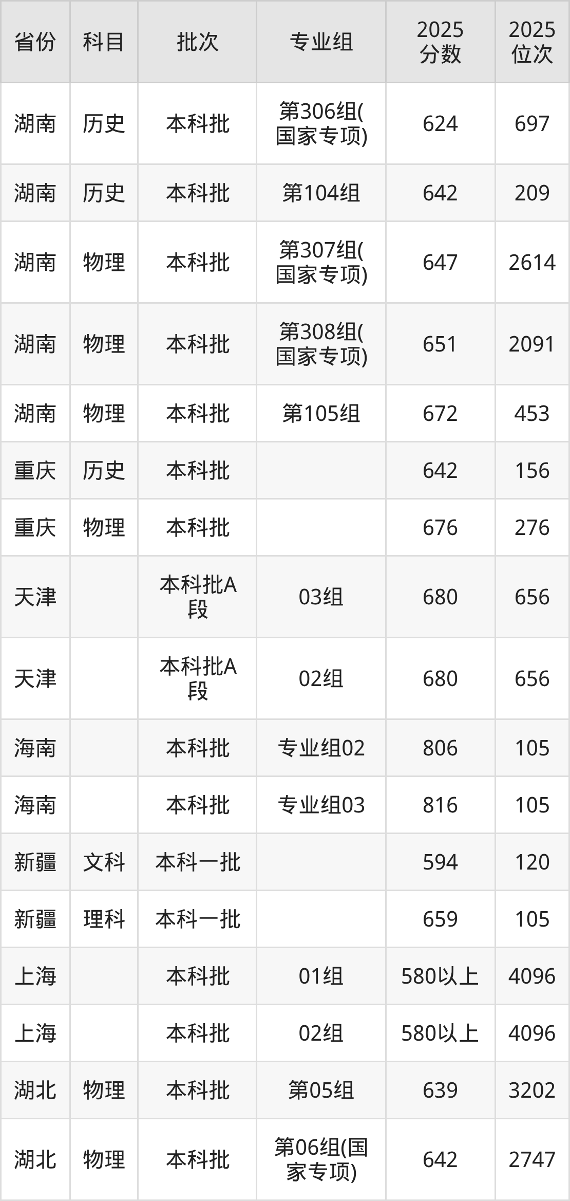 2025年投档录取最低分为644分,录取最低位次为192名。