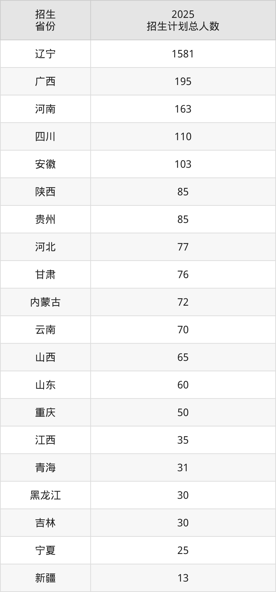 2025年大连职业技术学院面向全国24个省市开展专科招生;招生专业共41个,招生人数共2996人。2025年在辽宁省招生计划总人数是1581人,其中,大连职业技术学院在辽宁省招生人数最多的是机电一体化技术。大连职业技术学院在各省具体招生人数情况如下表。
