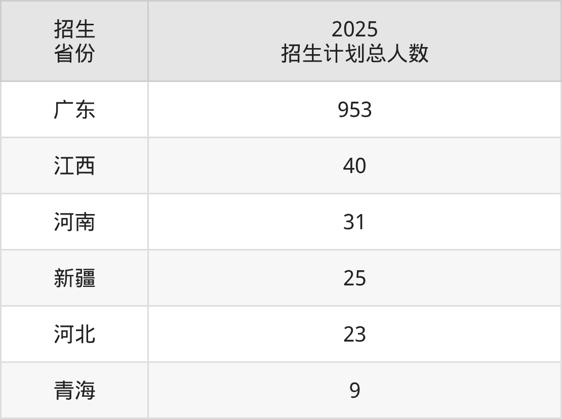 2025年广东江门中医药职业学院面向全国6个省市开展专科招生;招生专业共15个,招生人数共1081人。2025年在广东省招生计划总人数是953人,其中,广东江门中医药职业学院在广东省招生人数最多的是临床医学。广东江门中医药职业学院在各省具体招生人数情况如下表。