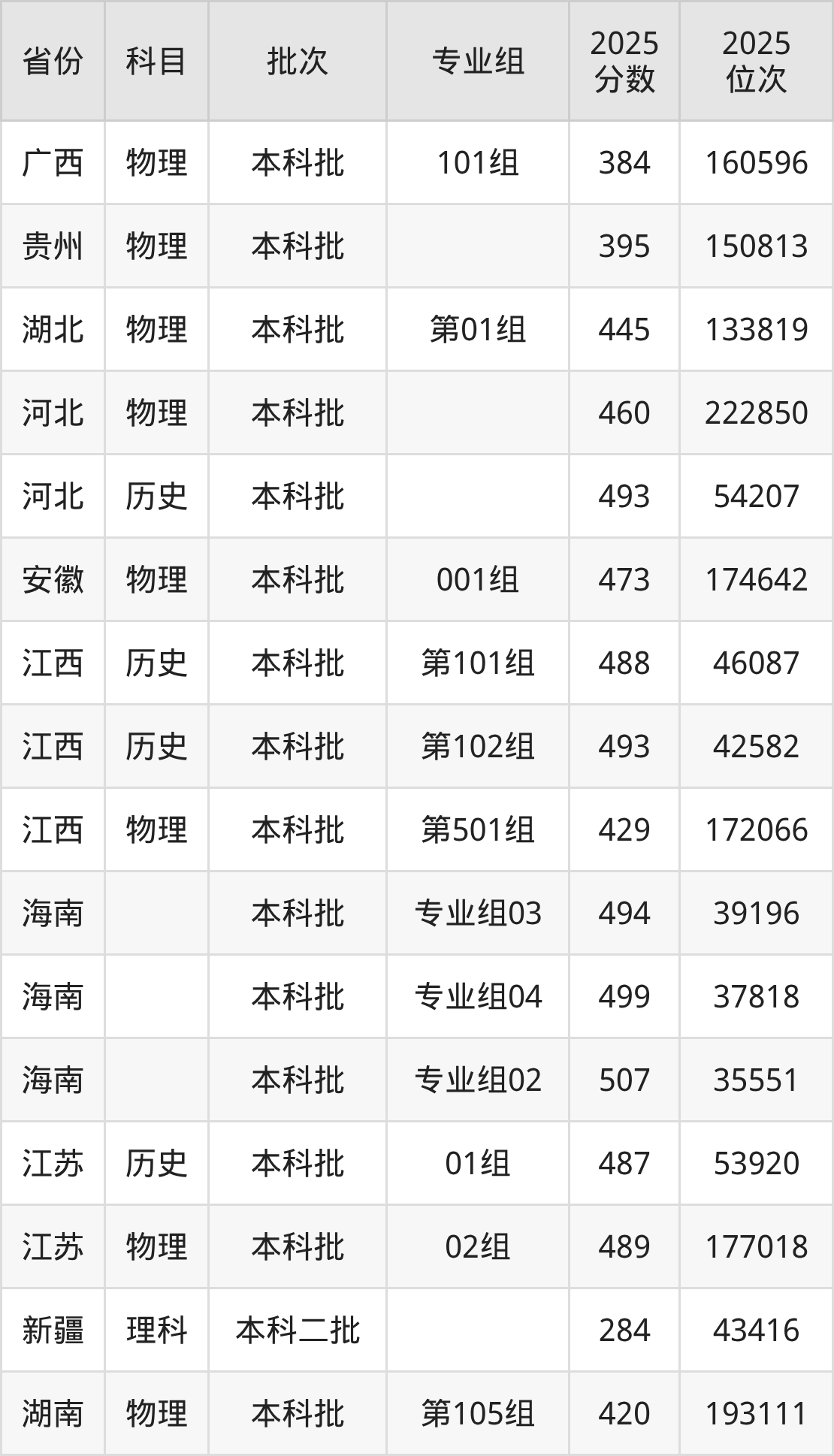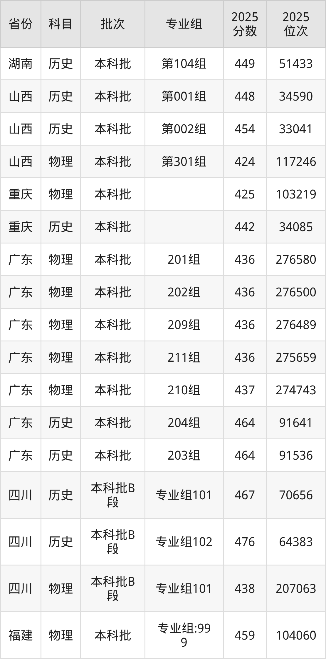 2025年投档录取最低分为425分,录取最低位次为103219名。