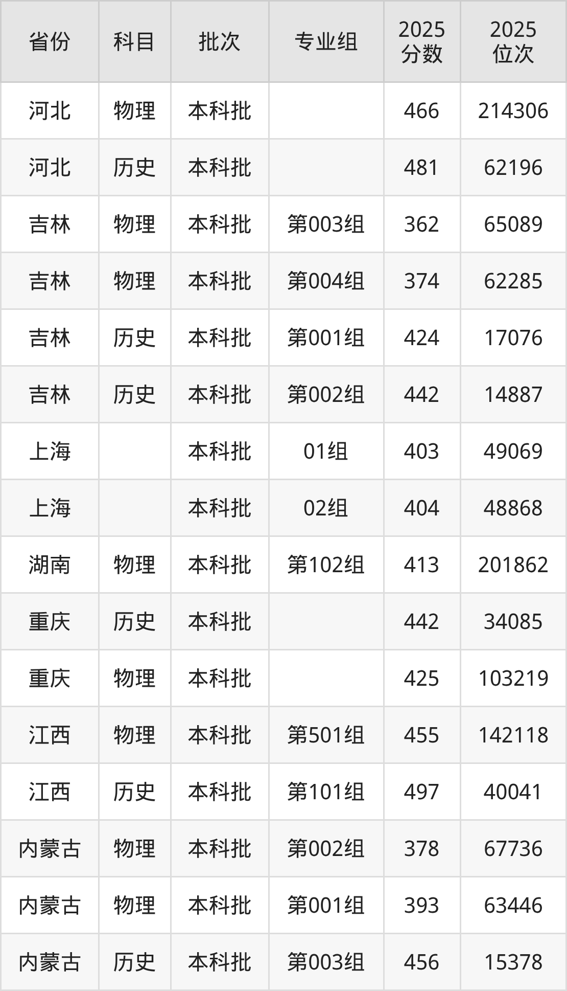 2025年投档录取最低分为425分,录取最低位次为103219名。