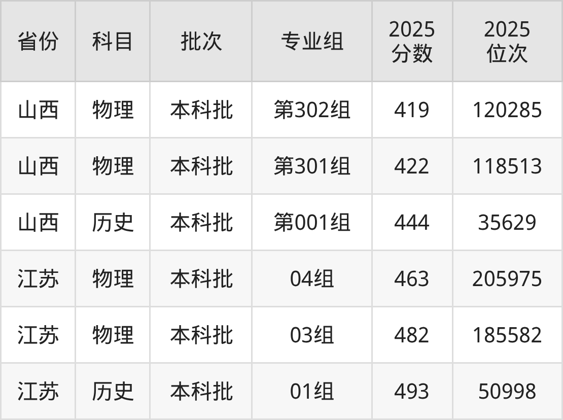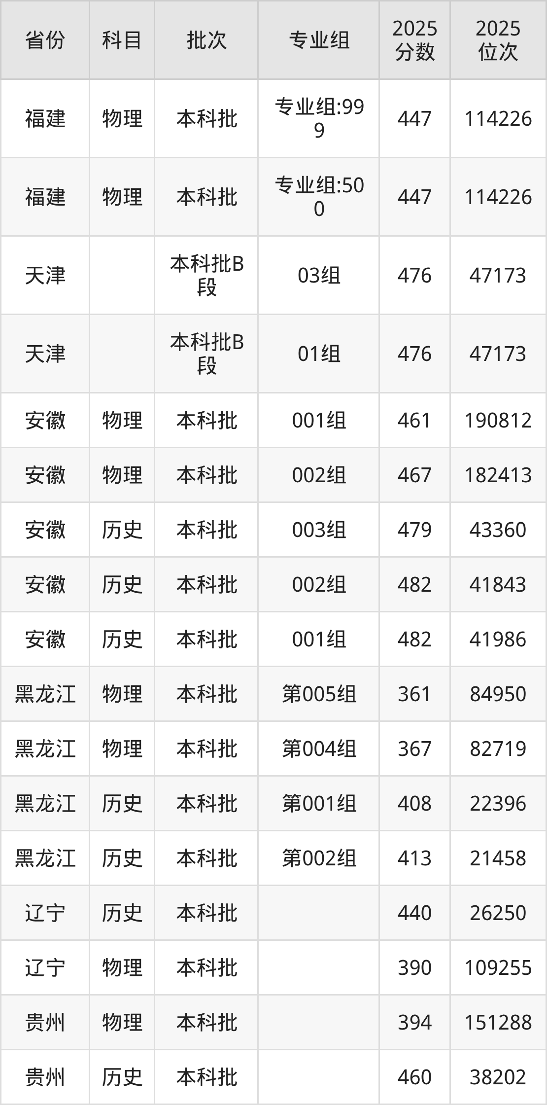 2025年在本科物理类进行招生,各专业组分数线详情如下: