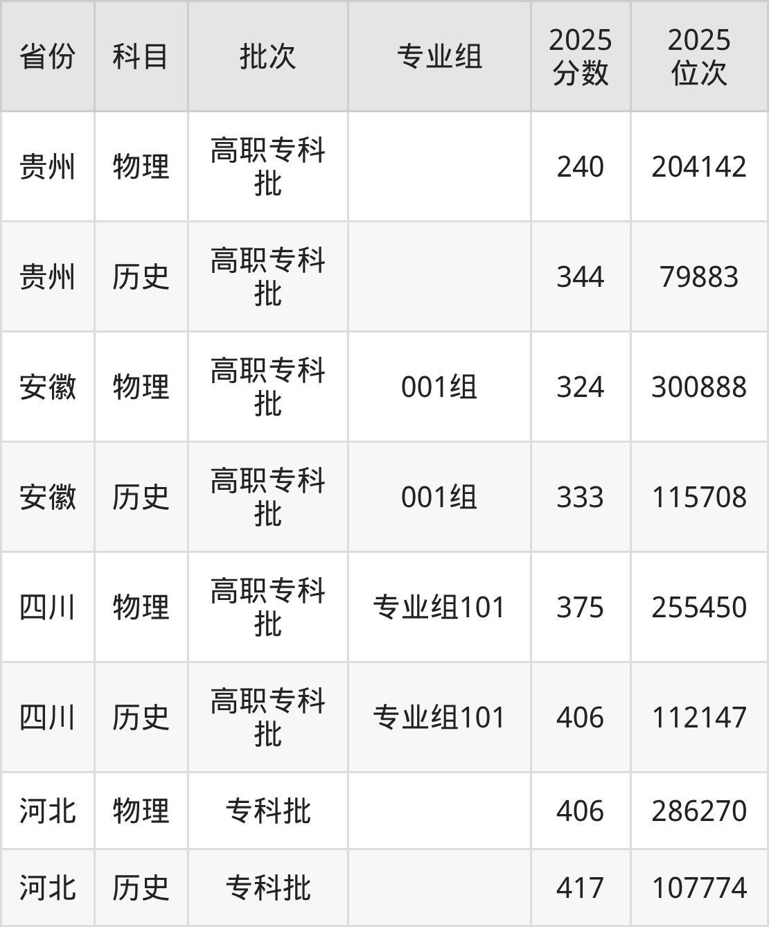 2025年投档录取最低分为240分,录取最低位次为204142名。