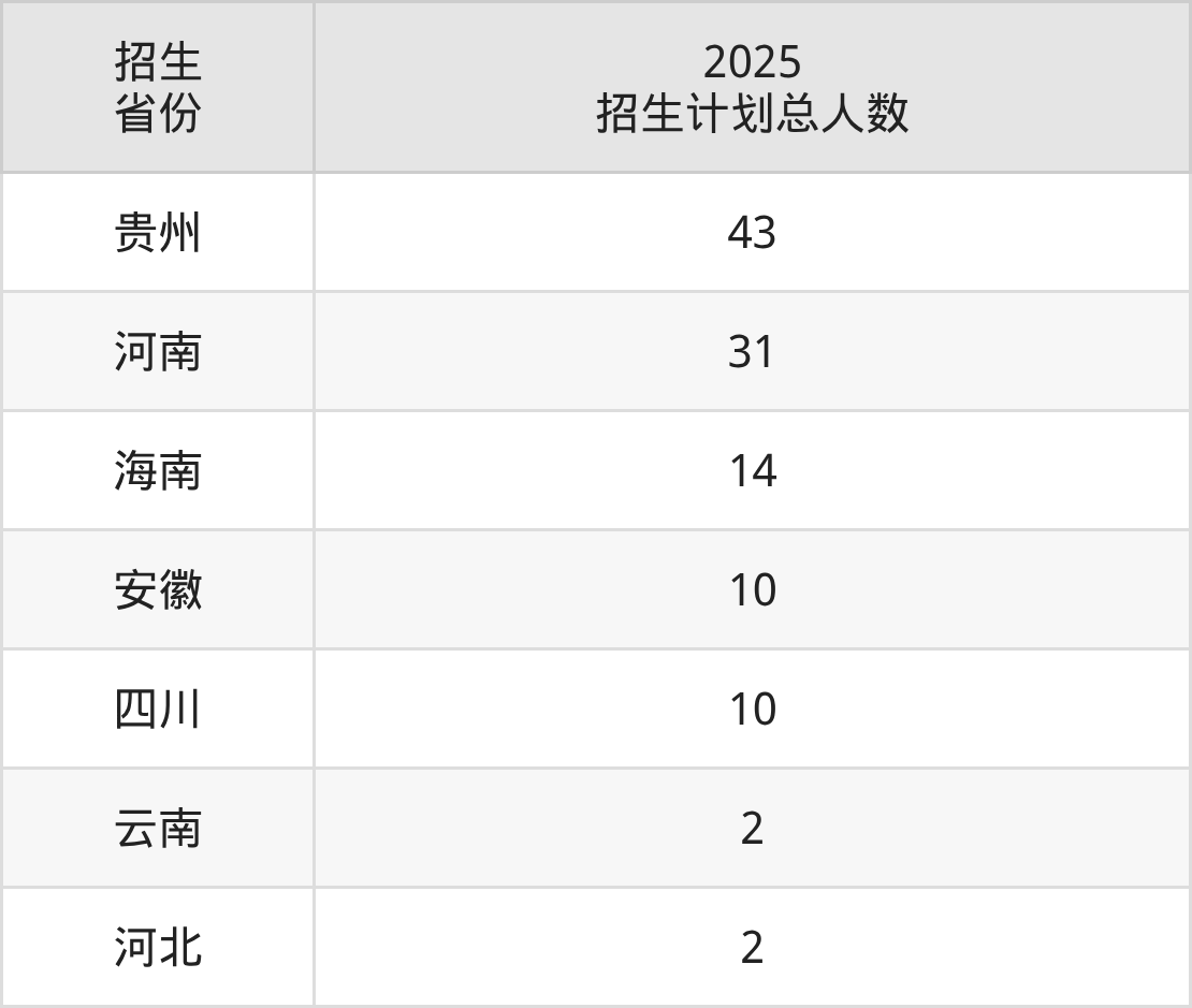 2025年广西体育高等专科学校面向全国7个省市开展专科招生;招生专业共6个,招生人数共112人。广西体育高等专科学校在各省具体招生人数情况如下表。