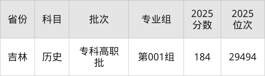 专科历史类投档录取最低184分