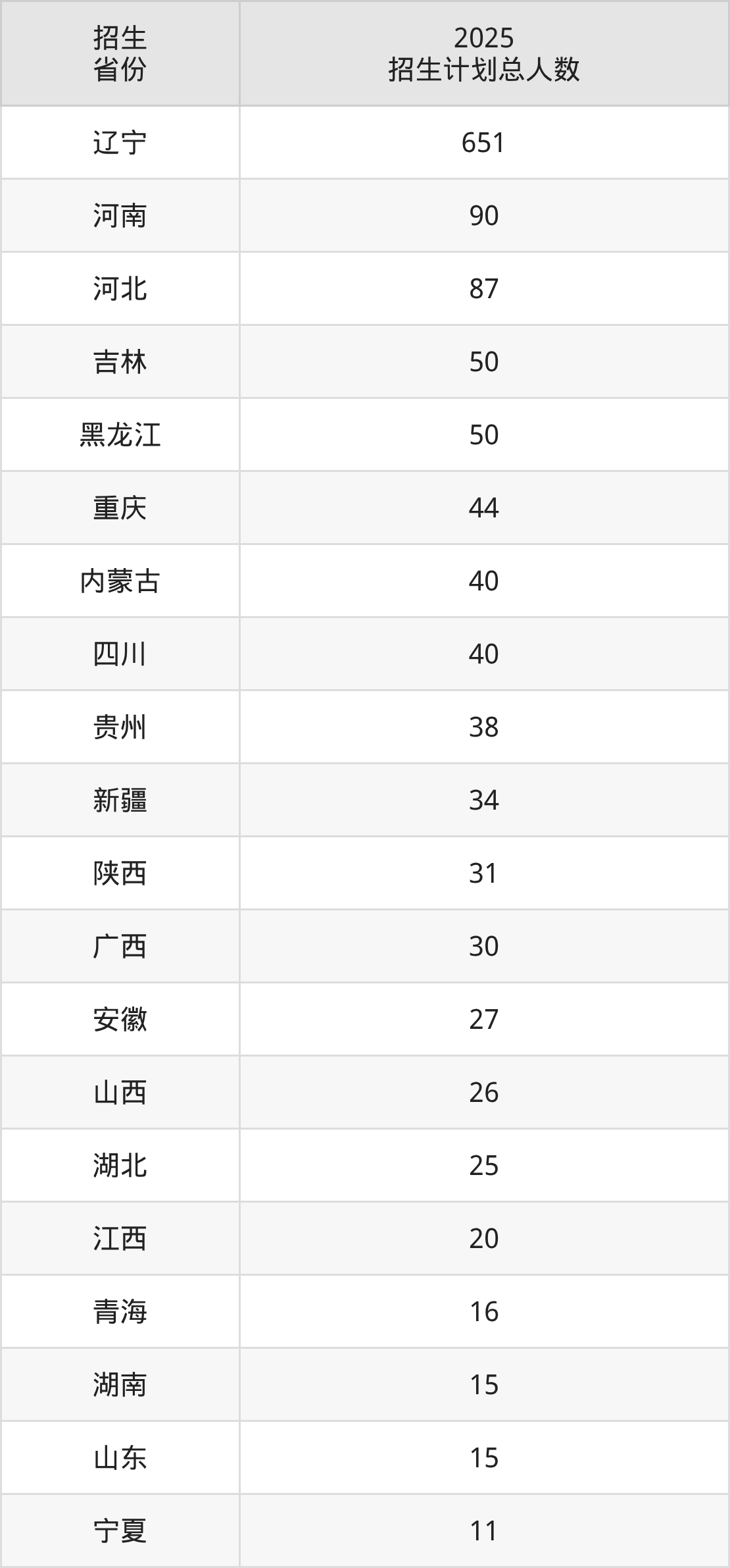 2025年辽宁机电职业技术学院面向全国24个省市开展专科招生;招生专业共32个,招生人数共1373人。2025年在辽宁省招生计划总人数是651人,其中,辽宁机电职业技术学院在辽宁省招生人数最多的是新能源汽车技术。辽宁机电职业技术学院在各省具体招生人数情况如下表。