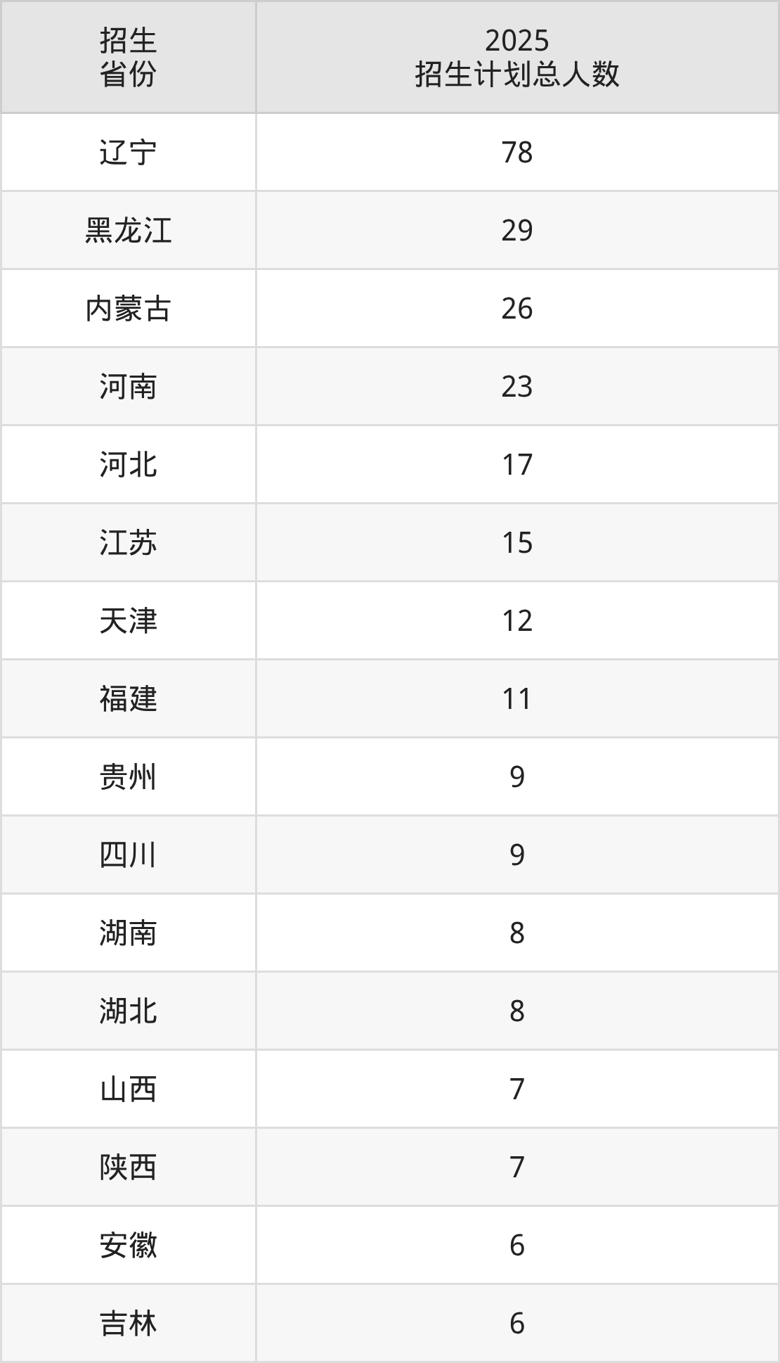 2025年沈阳体育学院面向全国17个省市开展本科招生;招生专业共6个,招生人数共276人。