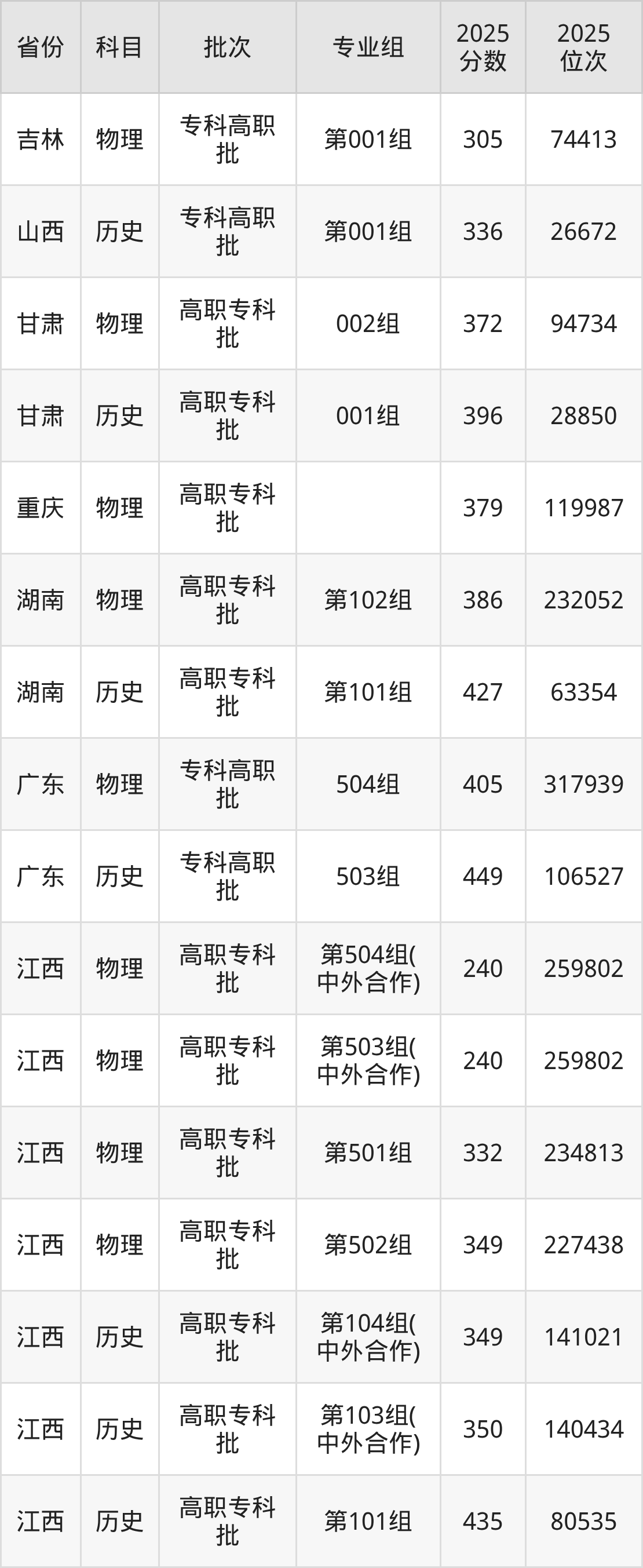 下面是2025年江西师范高等专科学校全国录取分数线一览表,请查阅。