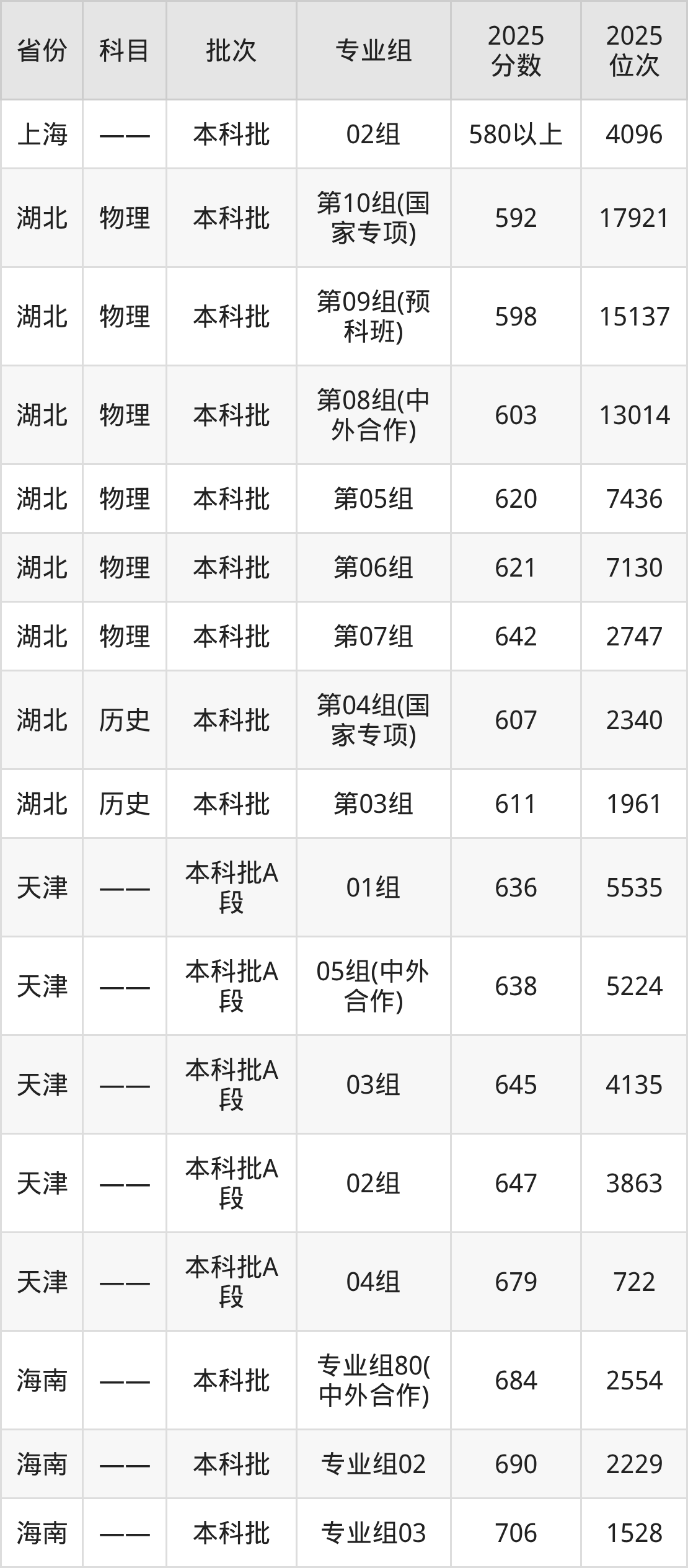 下面是2025年中南大学全国录取分数线一览表,请查阅。