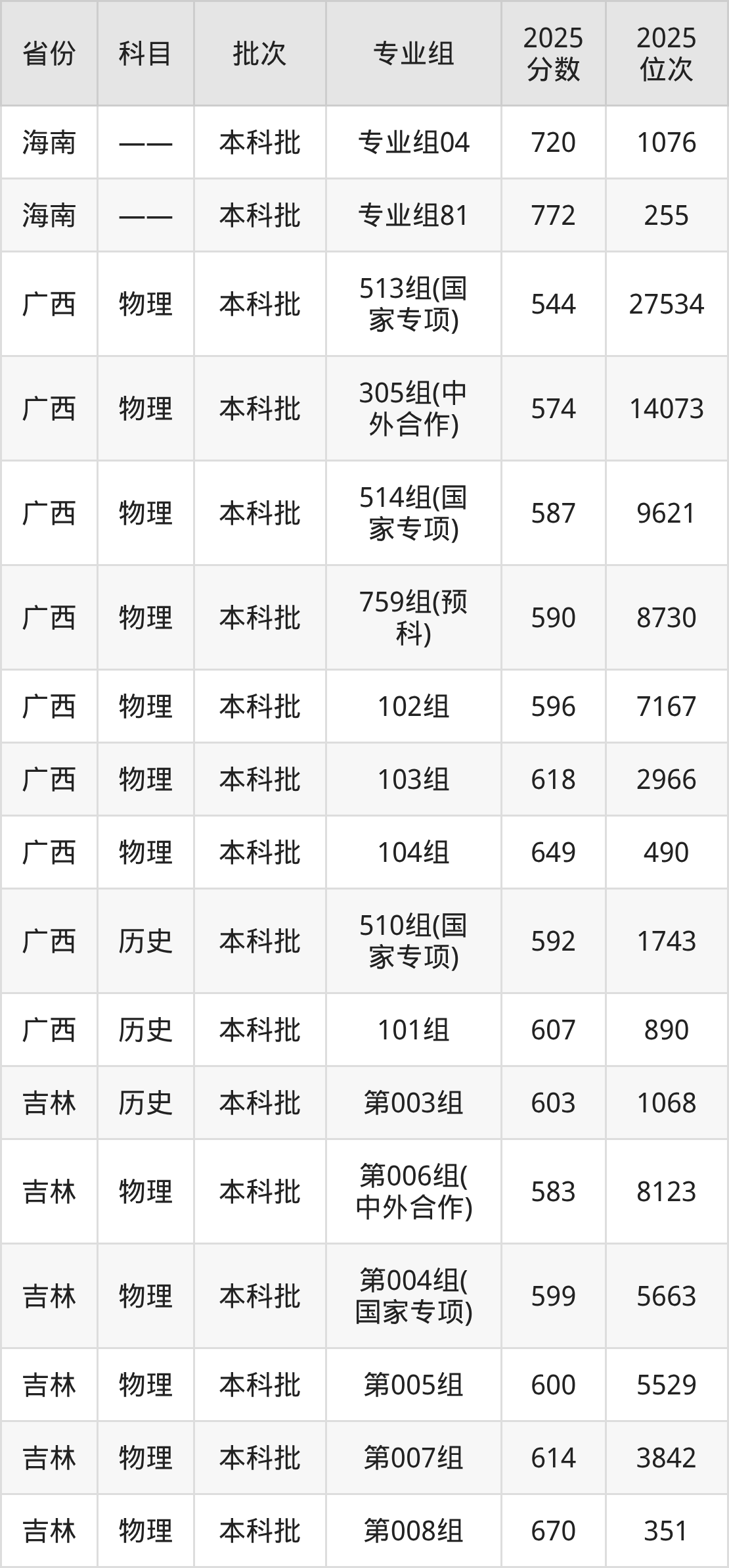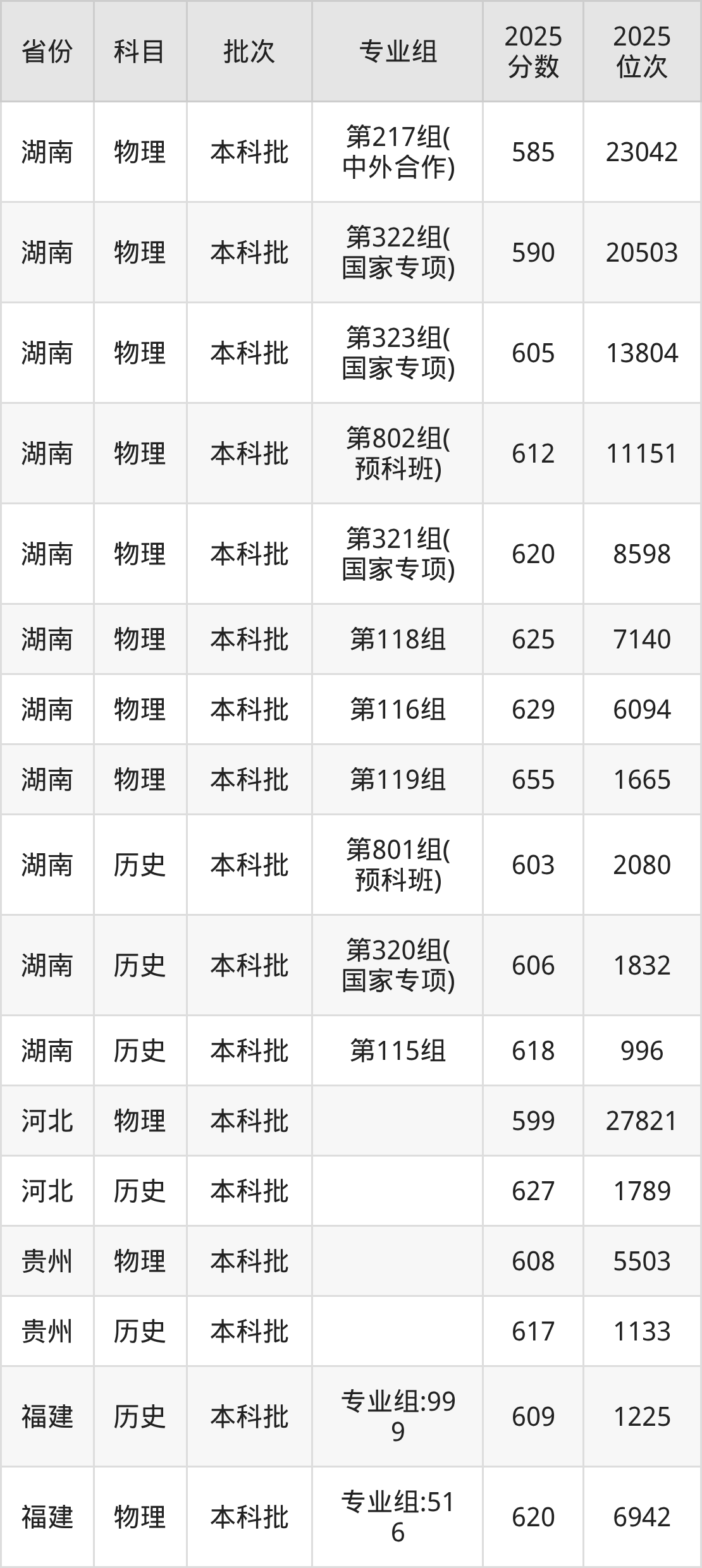 中南大学第008组:2025年投档录取最低分为600分,录取最低位次为5997名。