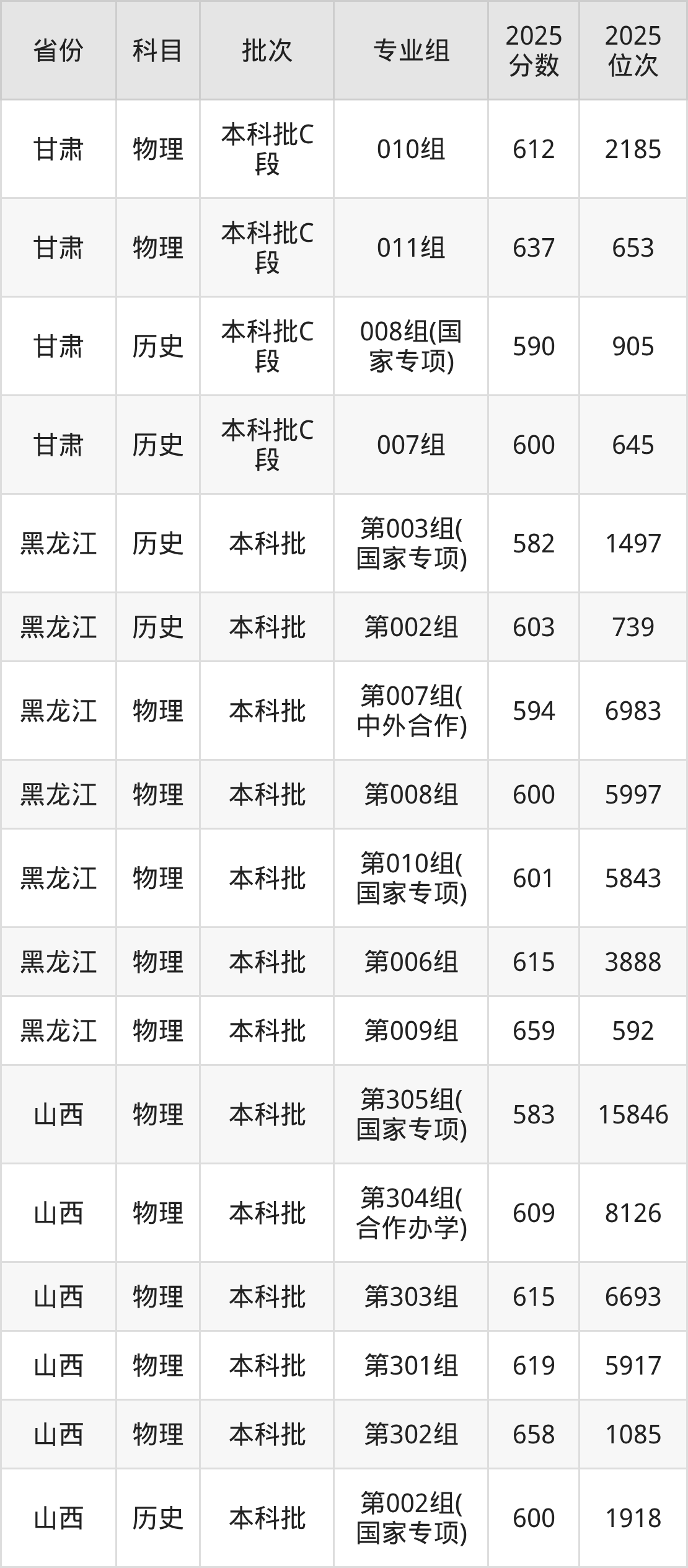 中南大学第305组(国家专项计划):2025年投档录取最低分为583分,录取最低位次为15846名。