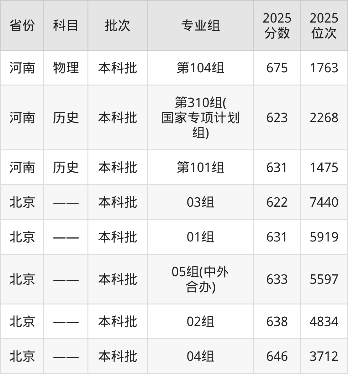 中南大学第310组(国家专项计划组):2025年投档录取最低分为623分,录取最低位次为2268名。