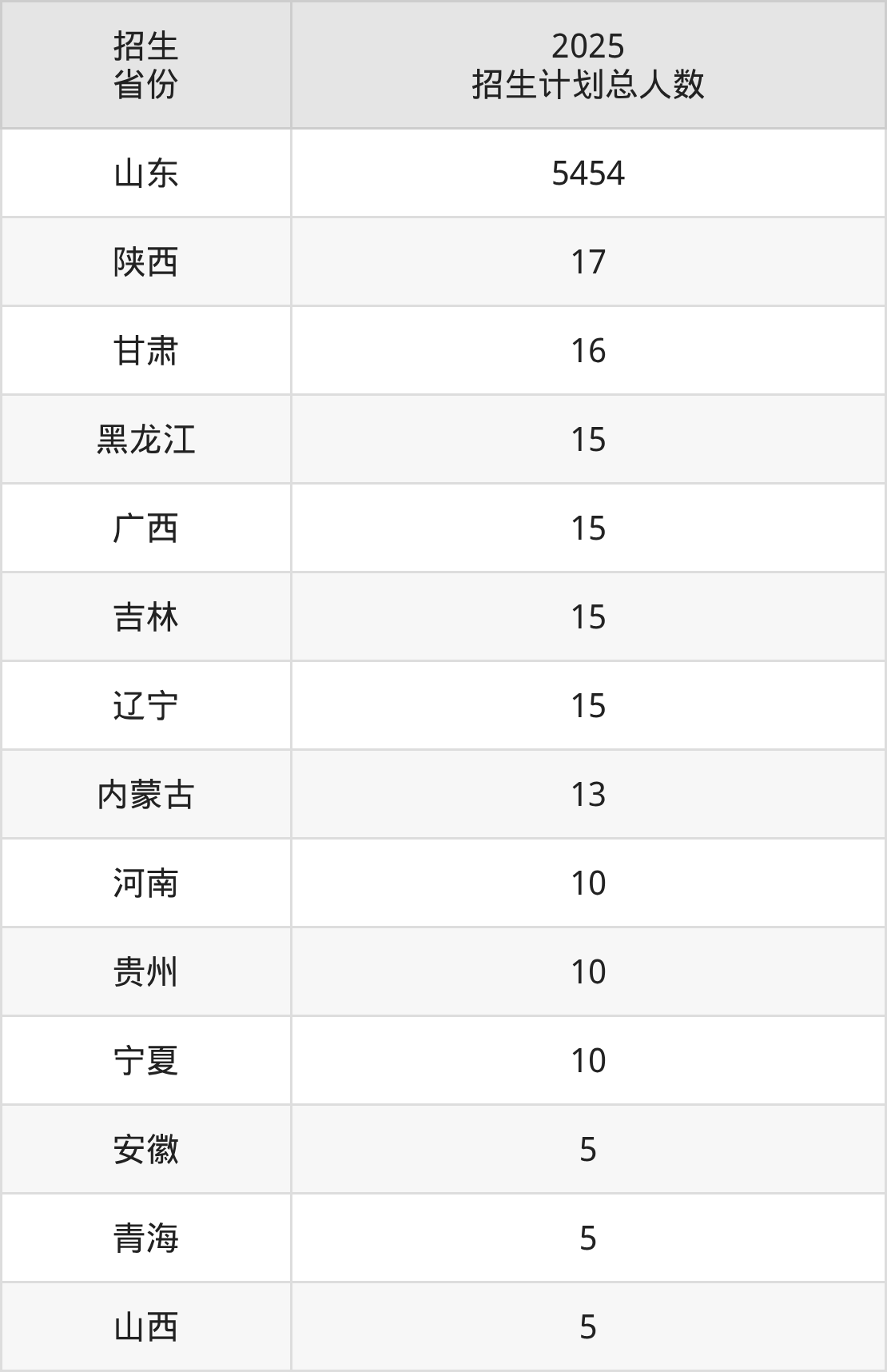 2025年山东医学高等专科学校面向全国14个省市开展专科招生;招生专业共23个,招生人数共5605人。2025年在山东省招生计划总人数是5454人,其中,山东医学高等专科学校在山东省招生人数最多的是护理。山东医学高等专科学校在各省具体招生人数情况如下表。