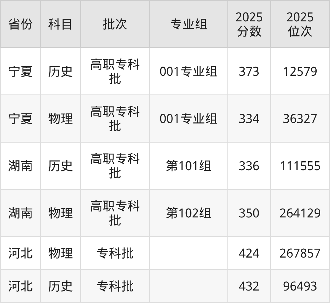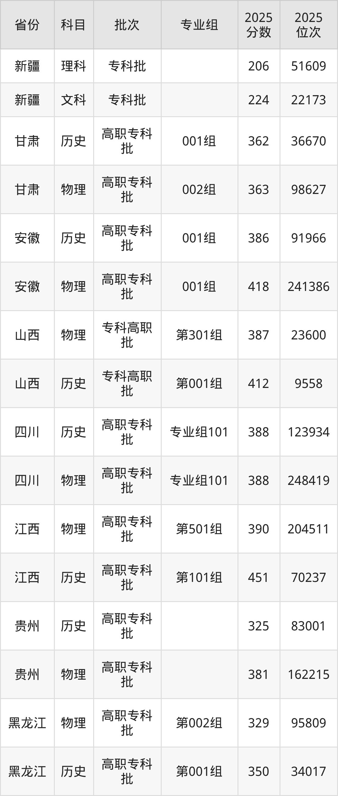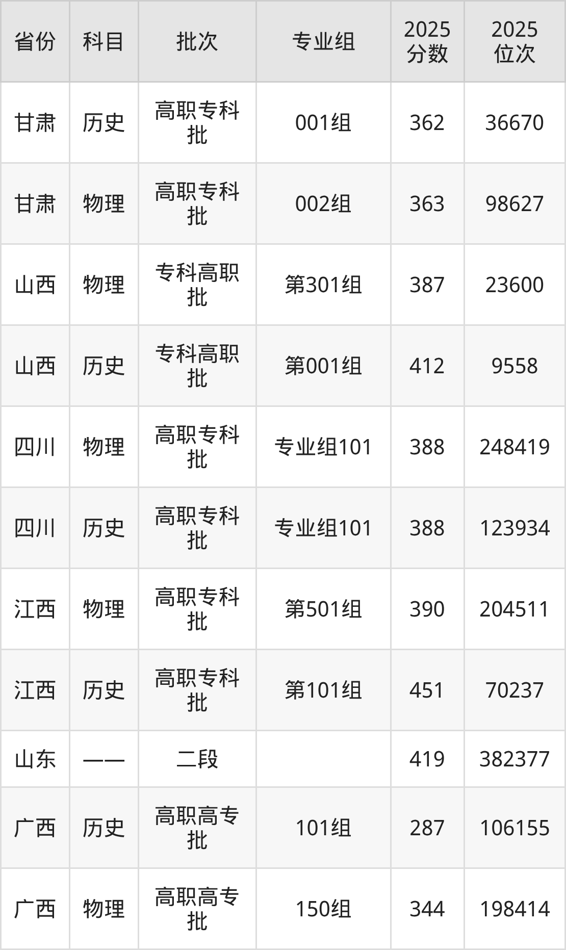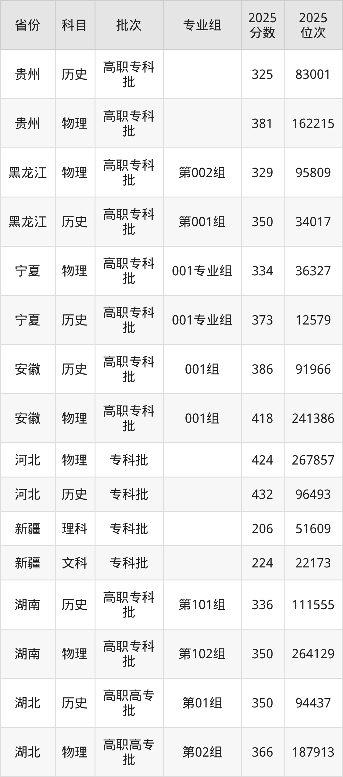 2025年投档录取最低分为325分,录取最低位次为83001名。