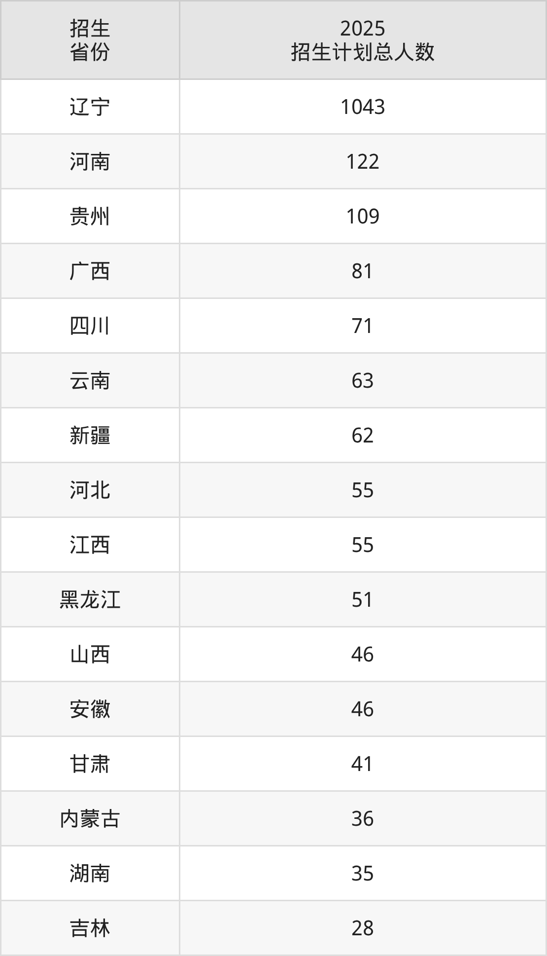 2025年营口理工学院面向全国18个省市开展本科招生;招生专业共27个,招生人数共1971人。2025年在辽宁省招生计划总人数是1043人,其中,营口理工学院在辽宁省招生人数最多的是材料成型及控制工程。营口理工学院在各省具体招生人数情况如下表。