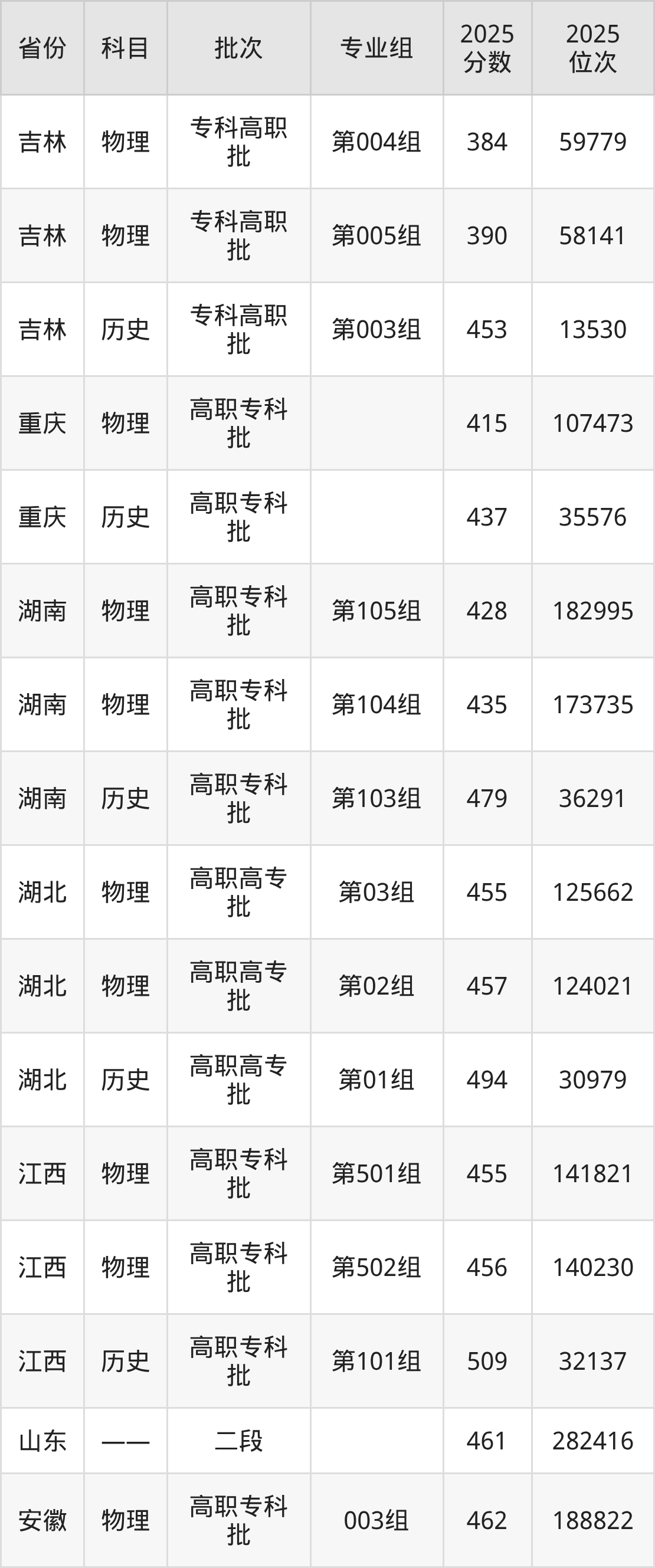 普通类专科物理类最低455分,专科历史类最低494分