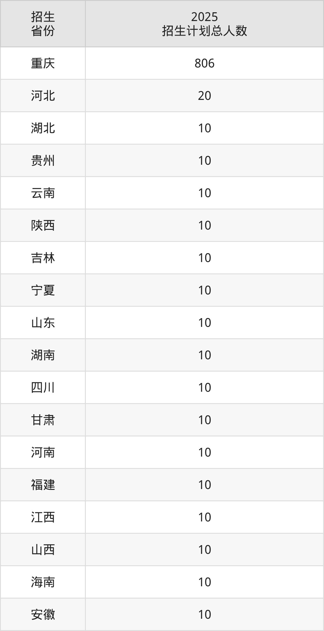 2025年重庆医药高等专科学校面向全国18个省市开展专科招生;招生专业共25个,招生人数共986人。