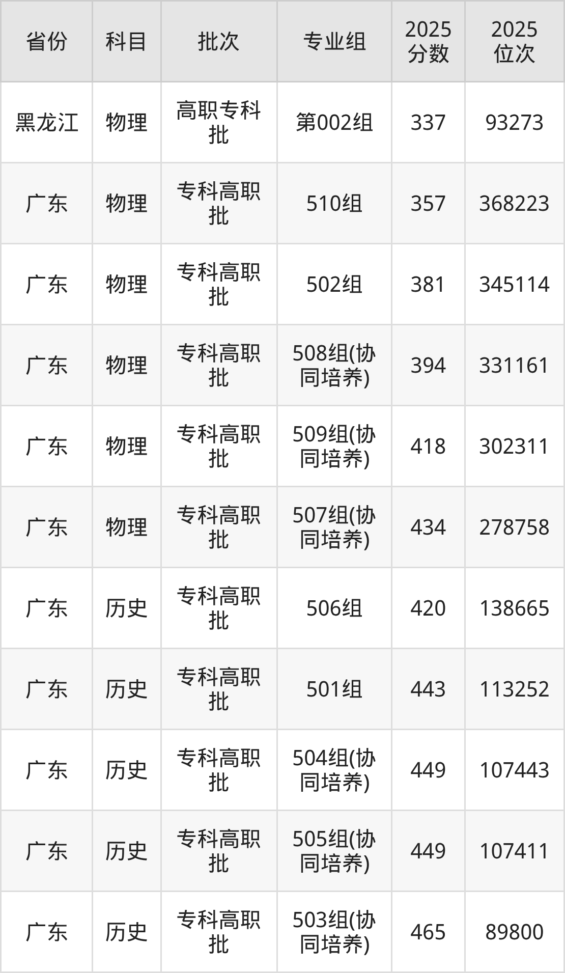 广东南华工商职业学院504组(协同培养):2025年投档录取最低分为449分,录取最低位次为107443名。