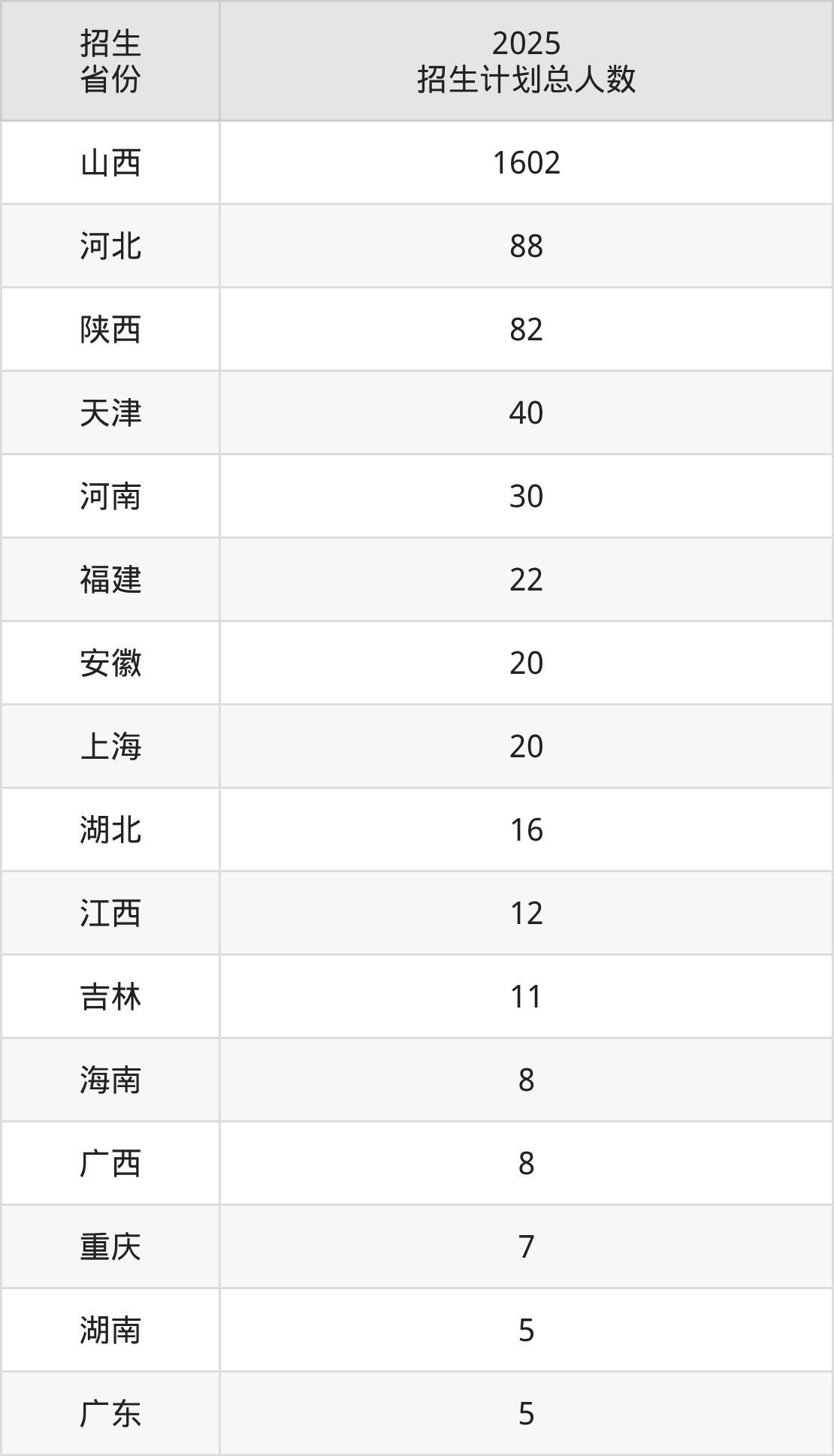 2025年山西工学院面向全国28个省市开展本科招生;招生专业共27个,招生人数共2002人。2025年在山西省招生计划总人数是1602人,其中,山西工学院在山西省招生人数最多的是软件工程。山西工学院在各省具体招生人数情况如下表。