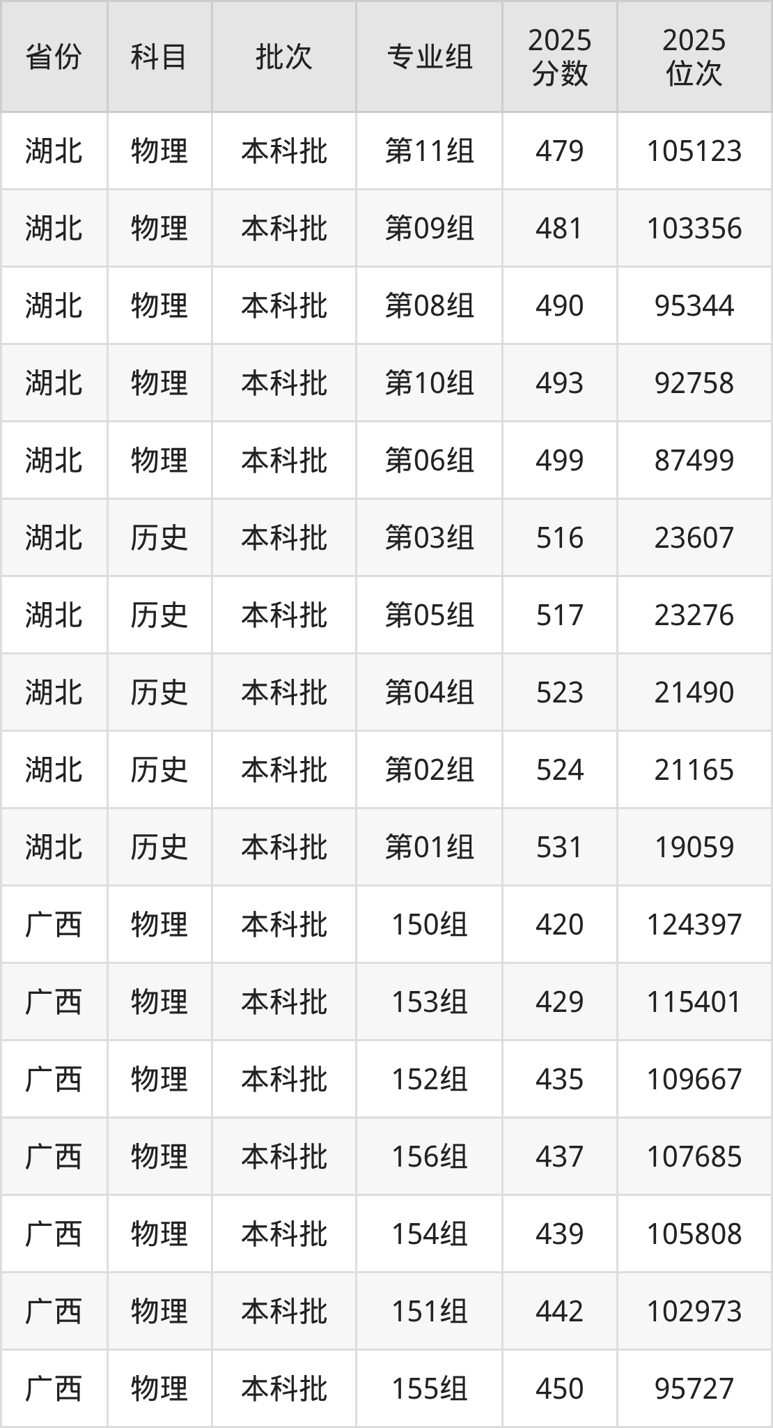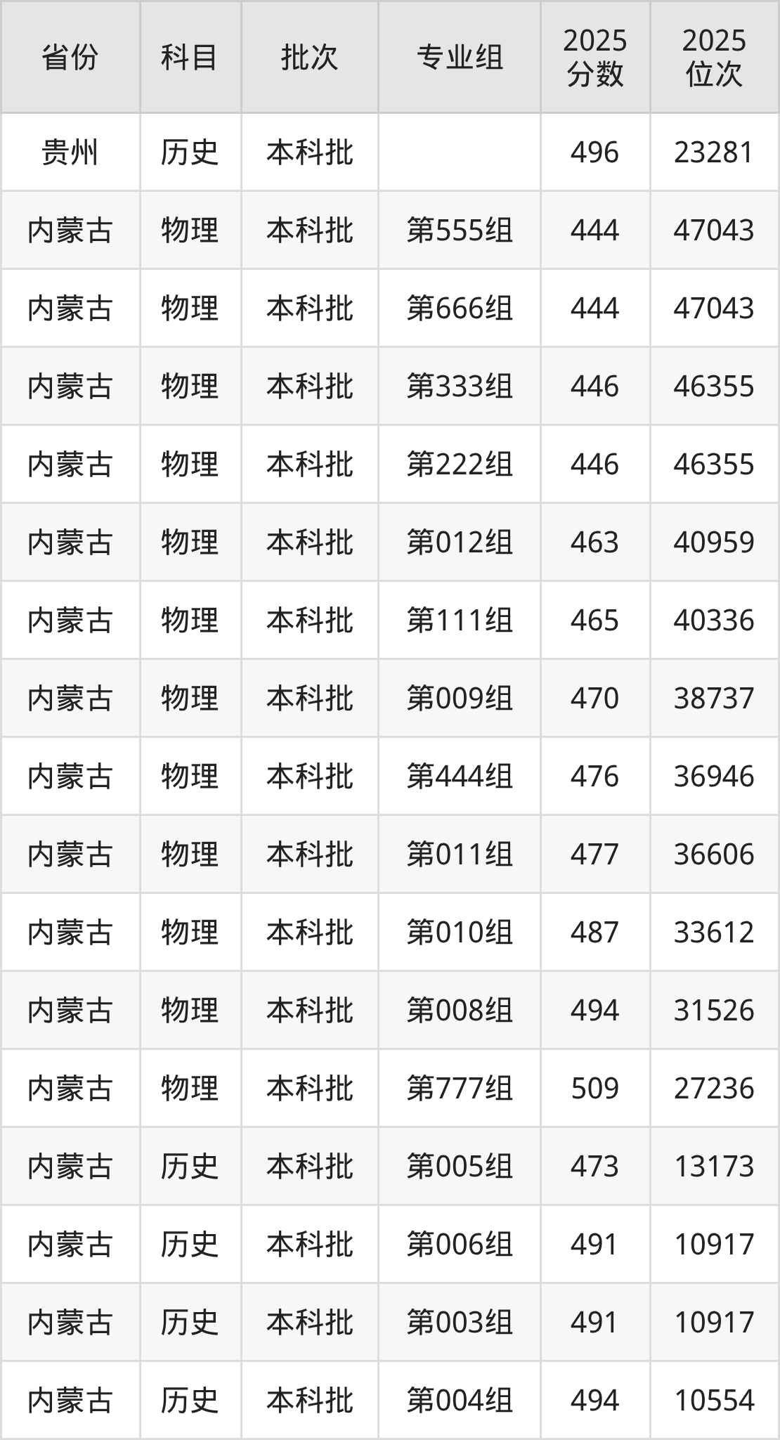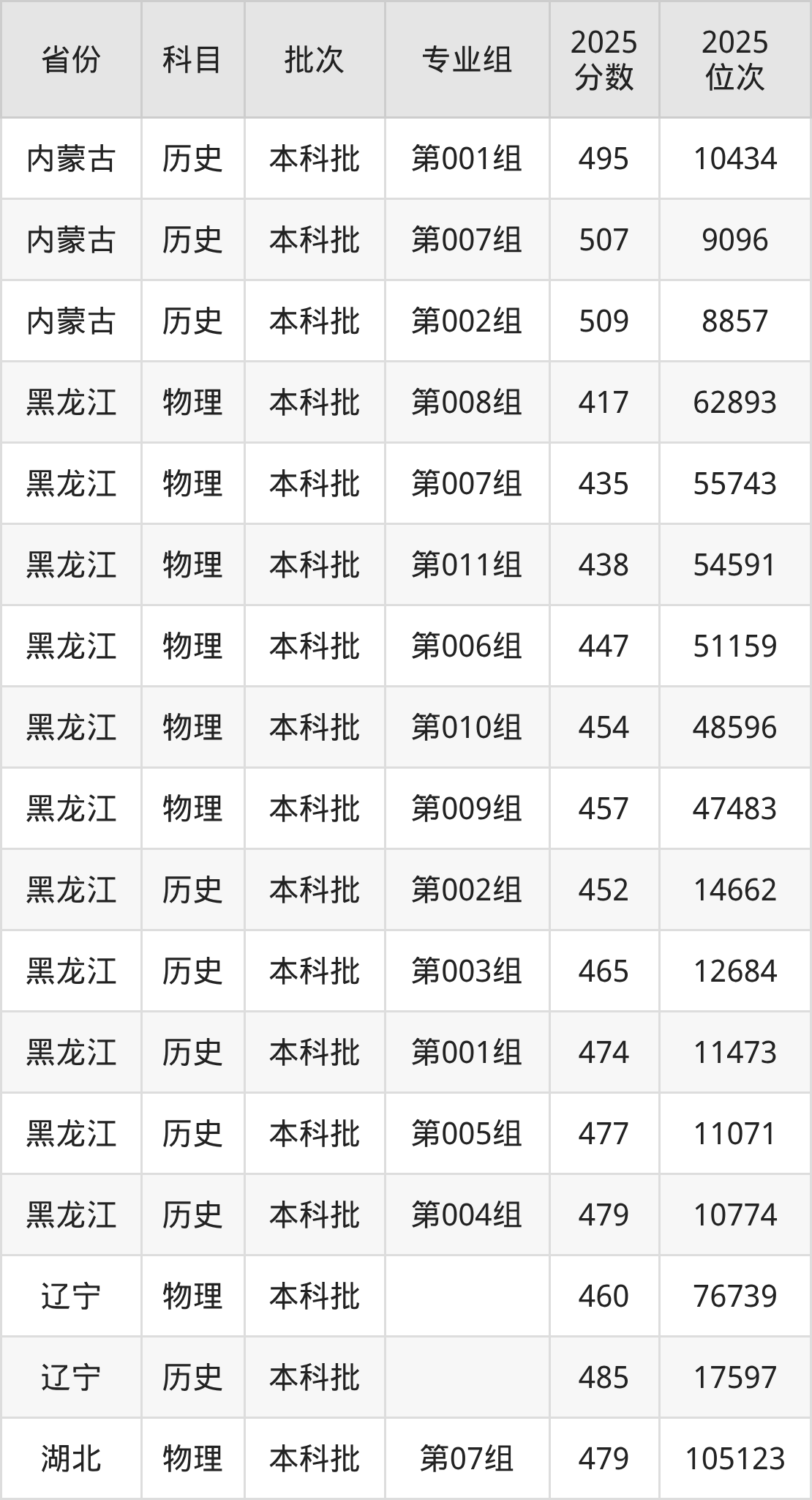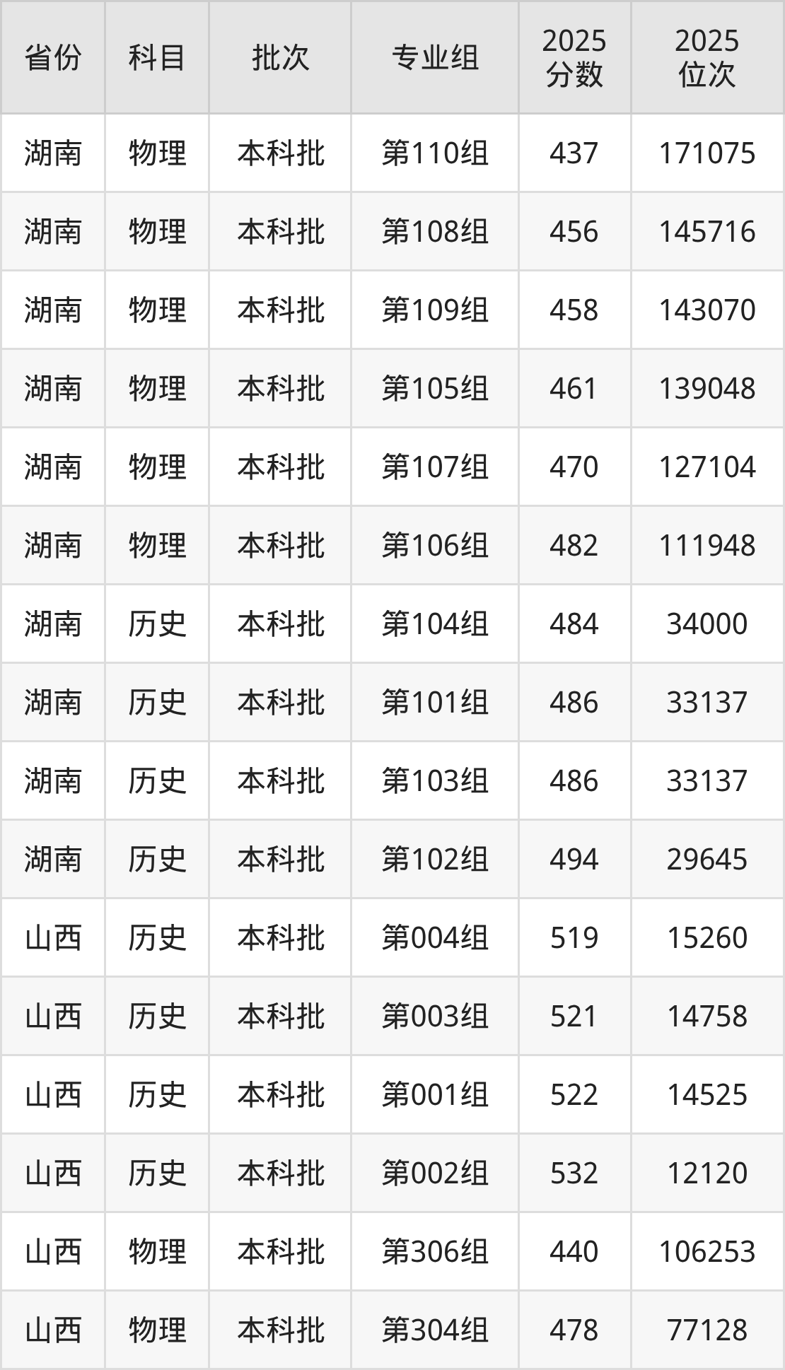 2025年投档录取最低分为460分,录取最低位次为76739名。