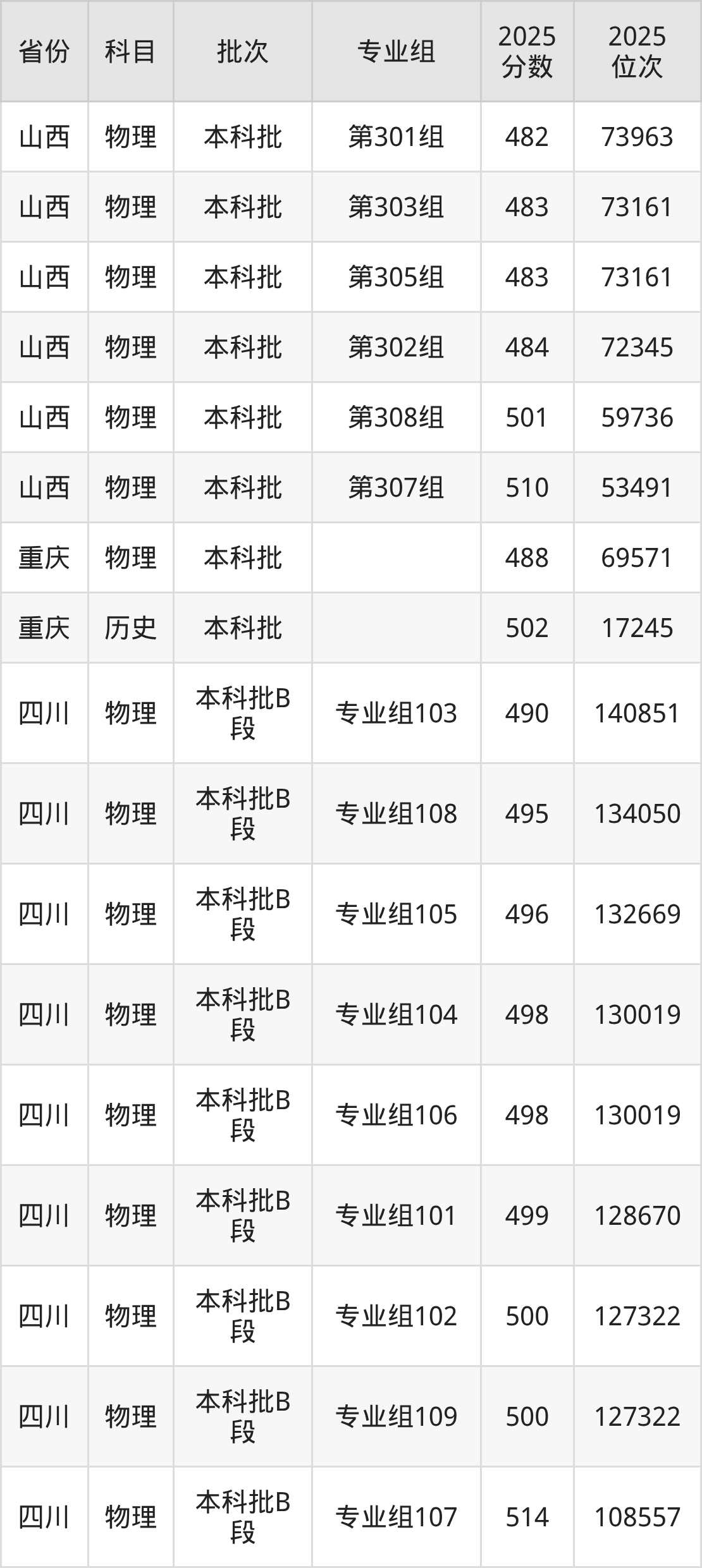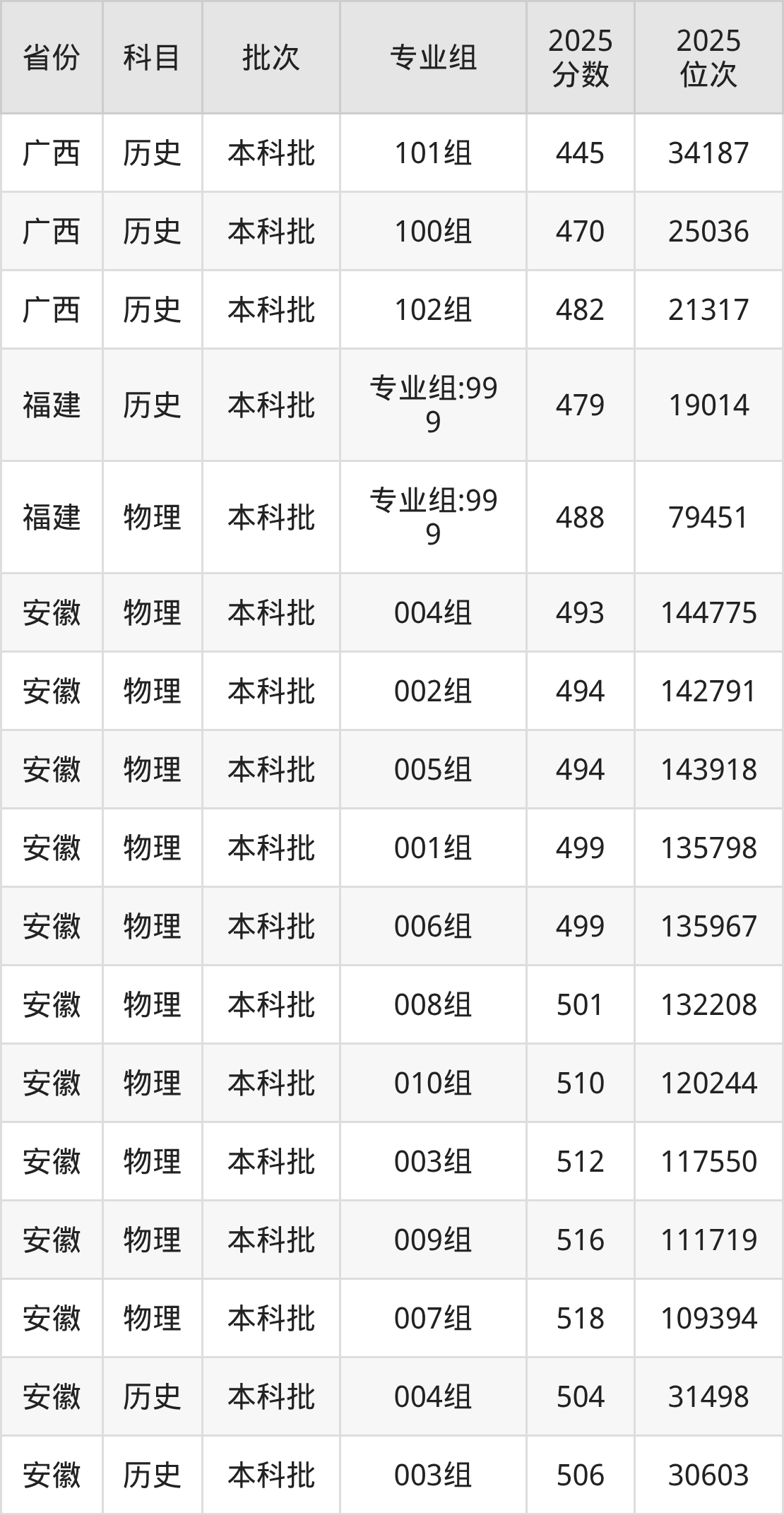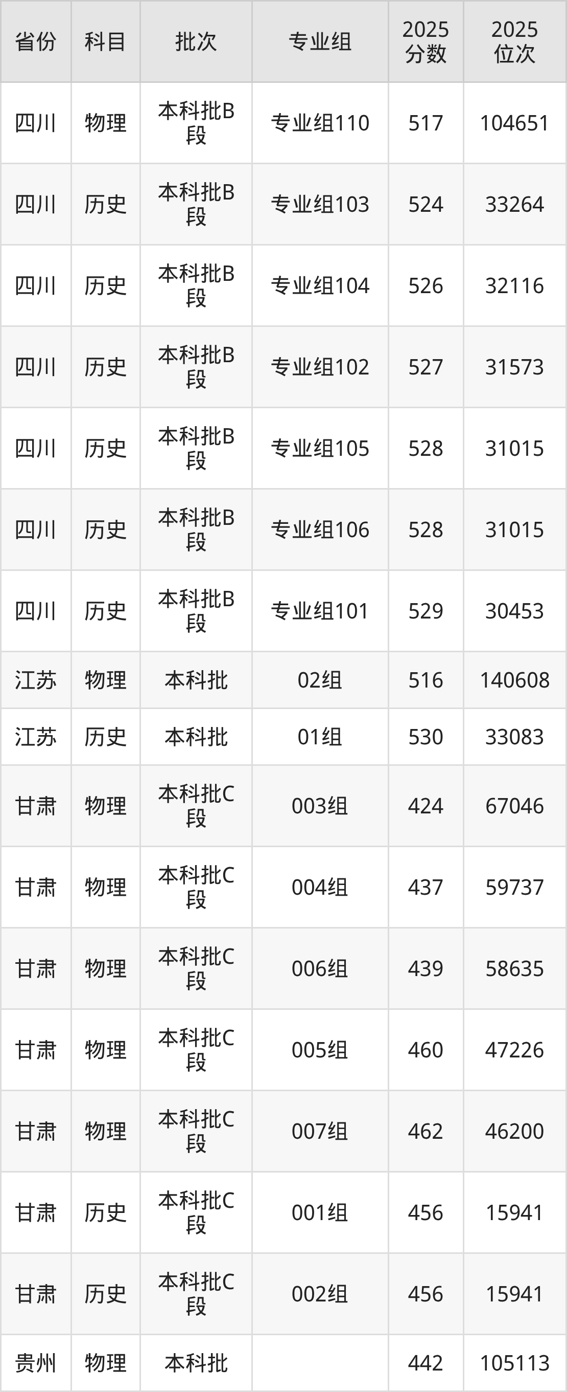 2025年投档录取最低分为502分,录取最低位次为17245名。