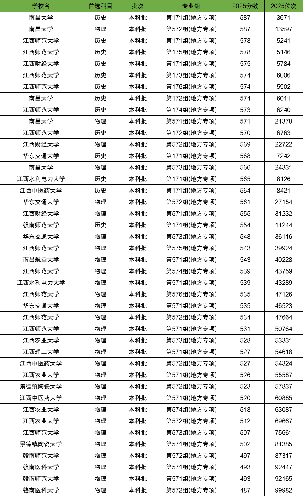 进行地方专项招生的都是省内的院校,基本都属于省内实力较强的本科院校,包含昌大、昌航、江财。如果要考上的话,物理类要比本科线高58分左右,历史类要高68分左右。