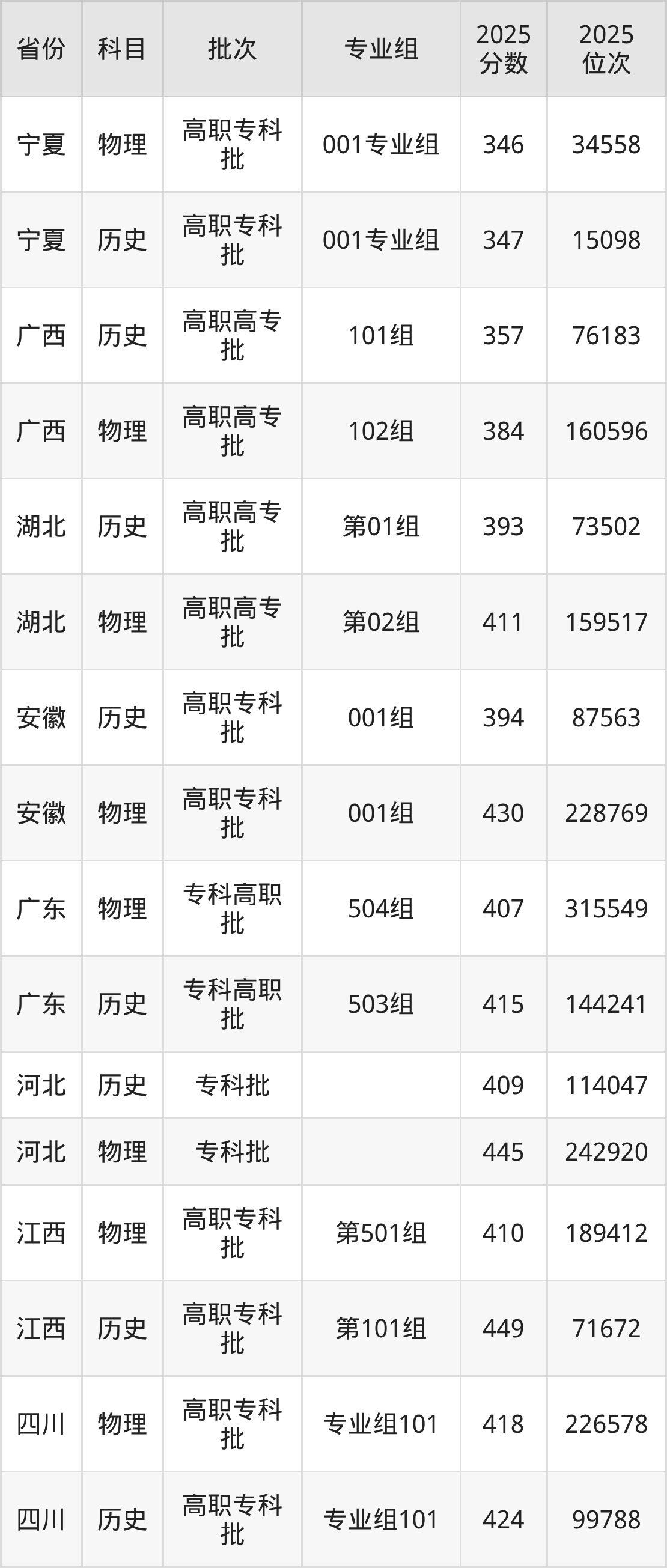 常州工业职业技术学院001专业组:2025年投档录取最低分为346分,录取最低位次为34558名。