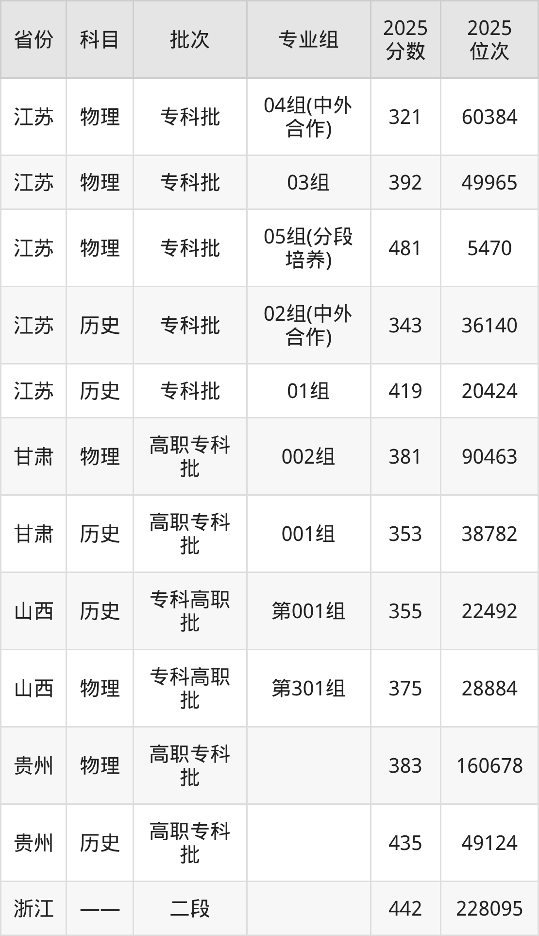 常州工业职业技术学院04组(中外合作办学):2025年投档录取最低分为321分,录取最低位次为60384名。