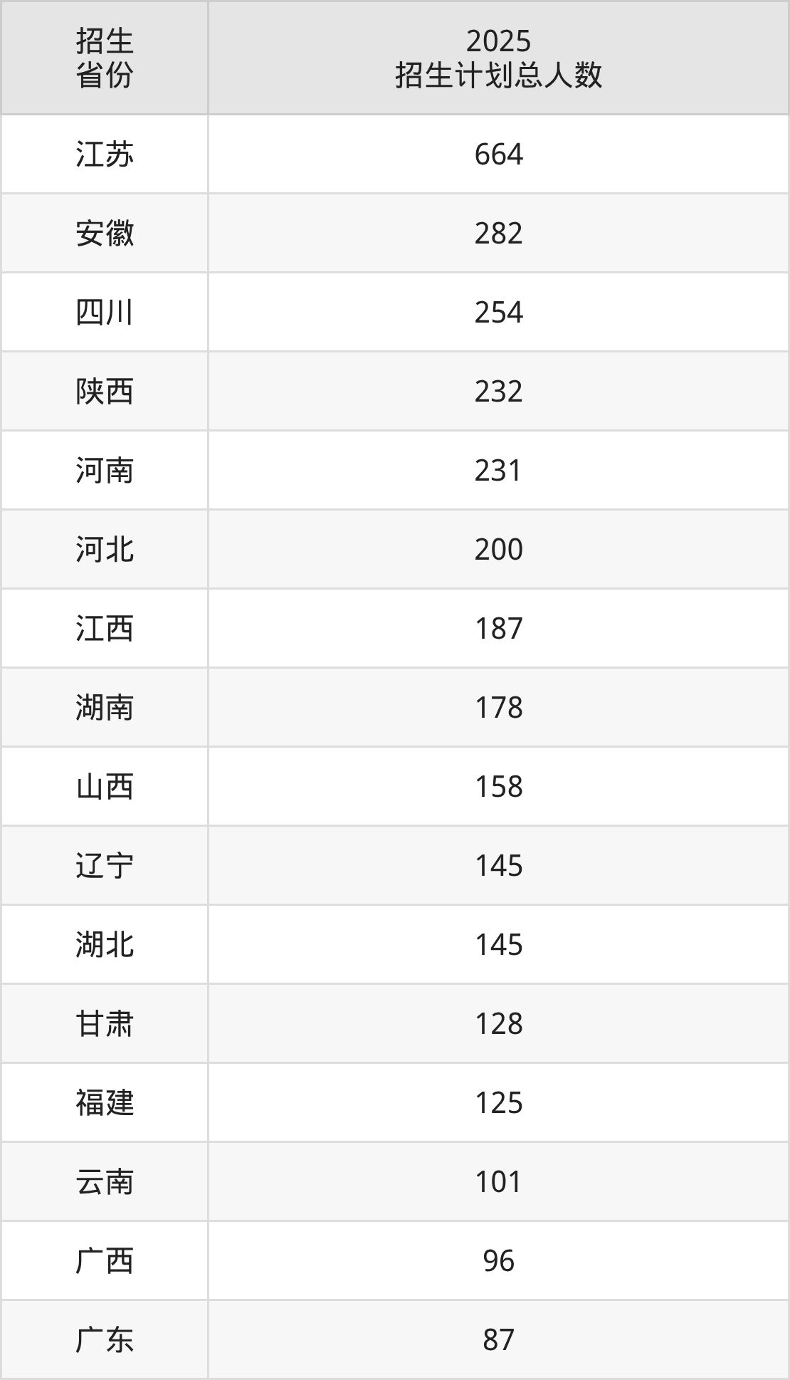2025年南京航空航天大学面向全国28个省市开展本科招生;招生专业共55个,招生人数共3896人。2025年在江苏省招生计划总人数是664人,其中,南京航空航天大学在江苏省招生人数最多的是电气工程及其自动化。南京航空航天大学在各省具体招生人数情况如下表。