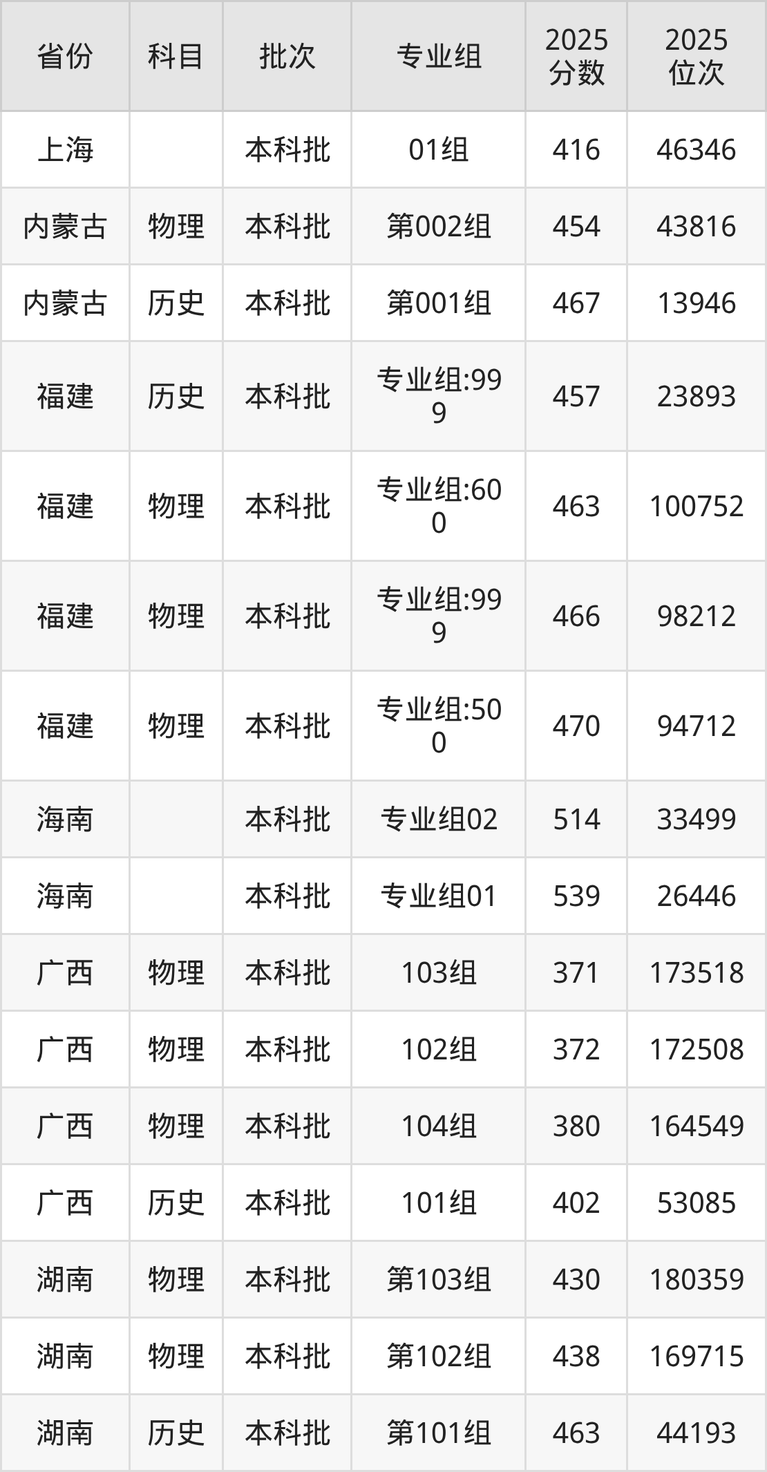 普通类本科物理类最低463分,本科历史类最低501分