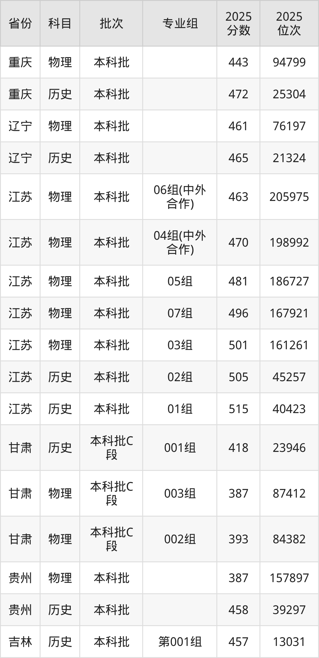 无锡太湖学院003组:2025年投档录取最低分为474分,录取最低位次为173000名。