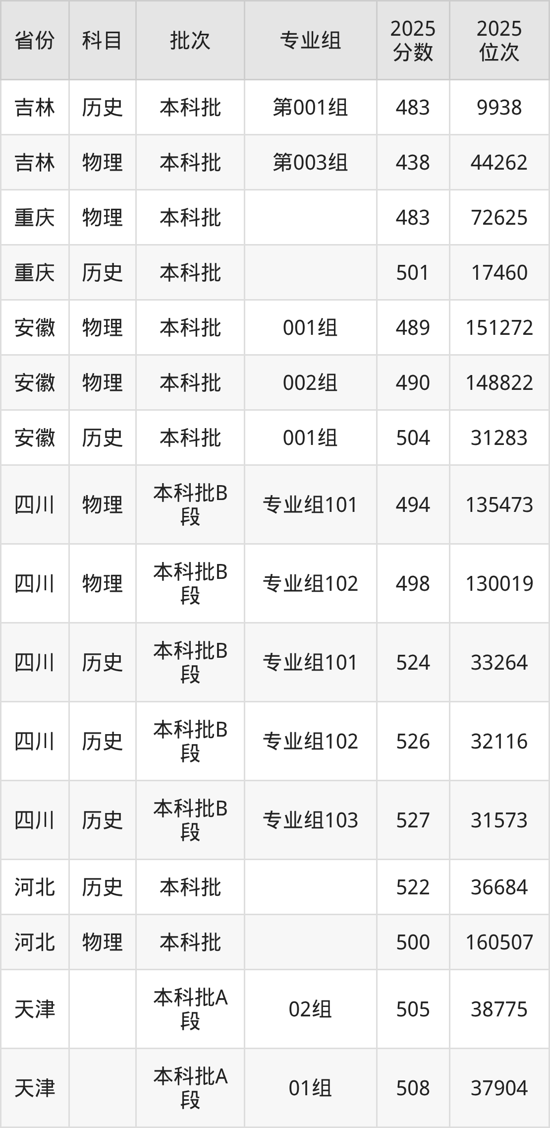 普通类本科物理类最低498分,本科历史类最低523分