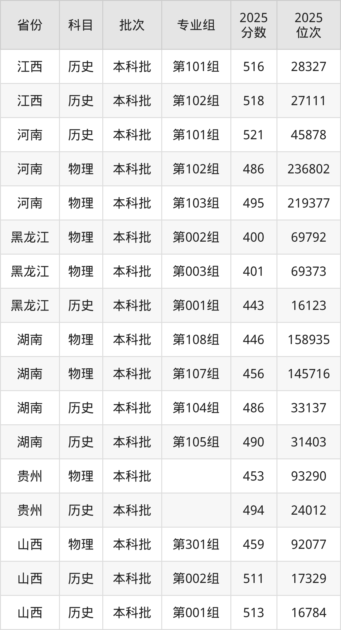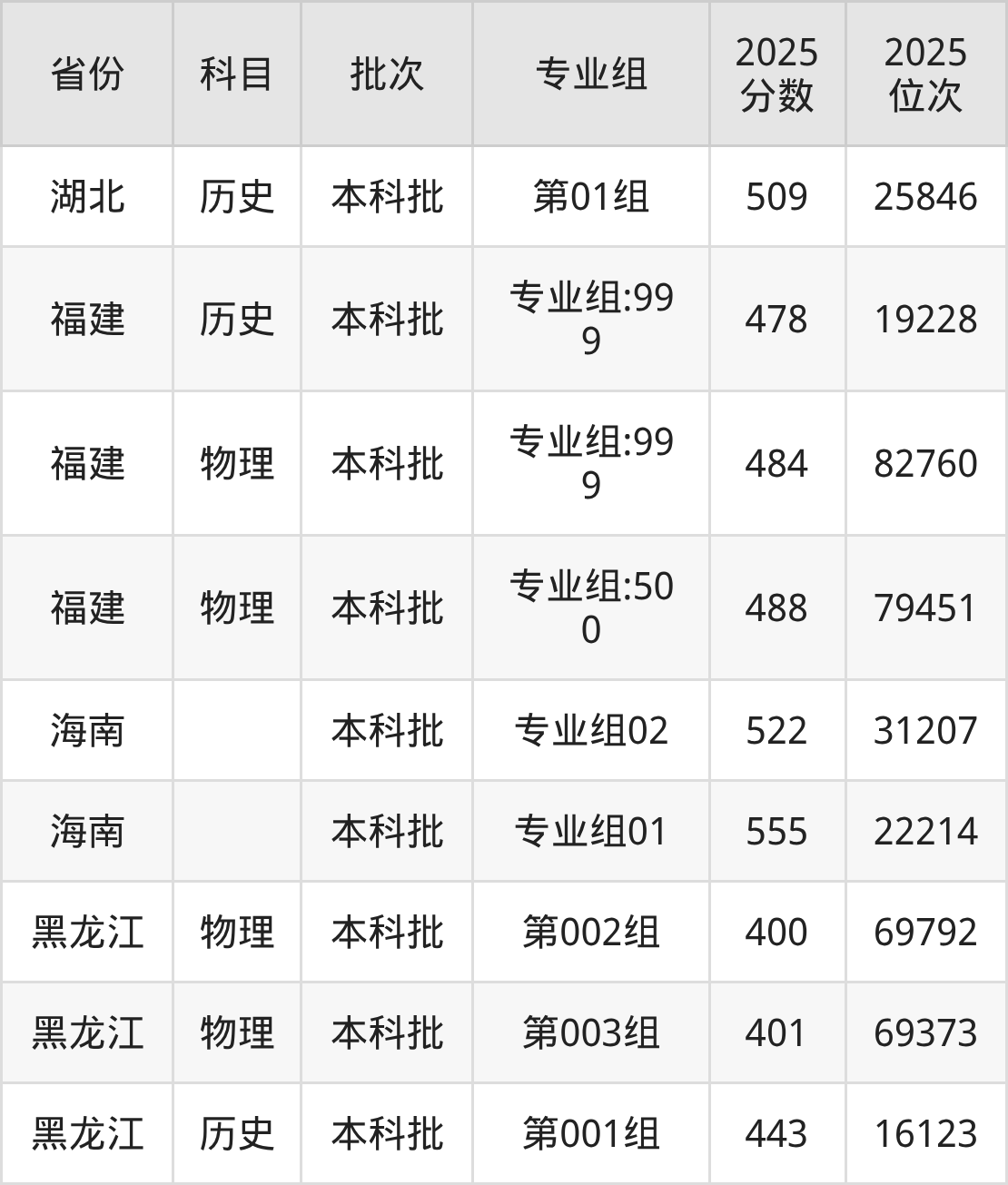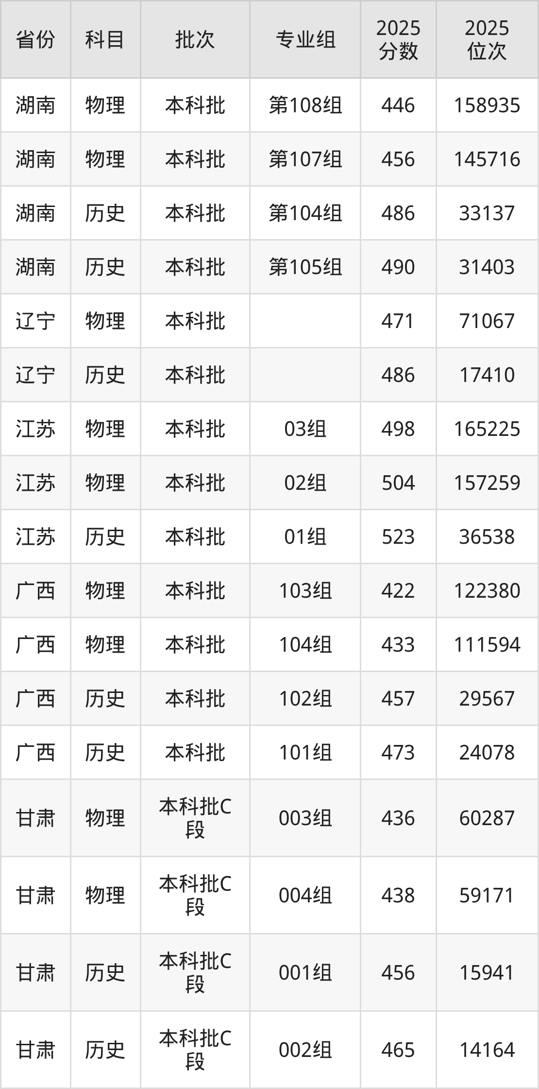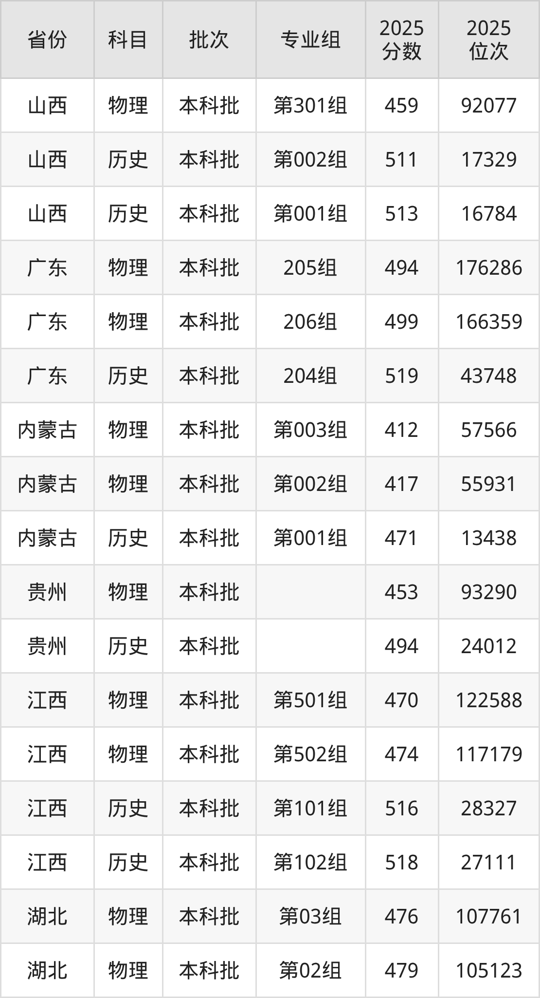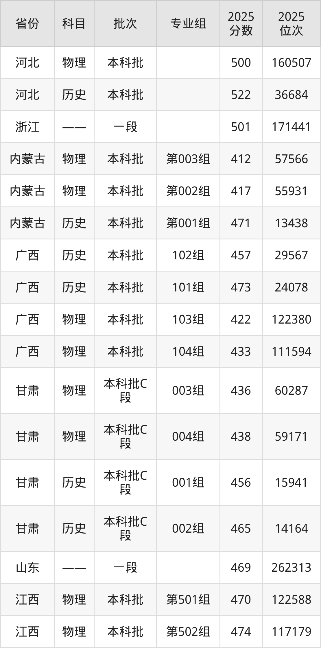 普通类本科物理类最低412分,本科历史类最低471分