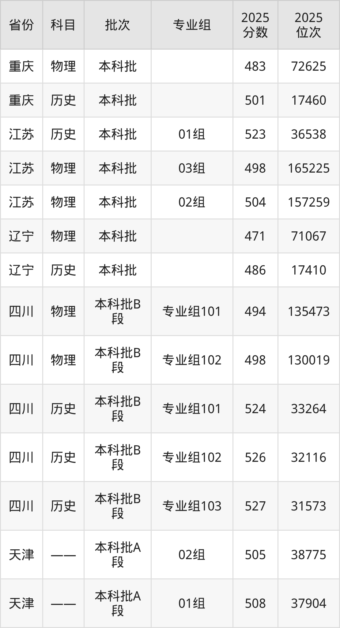 一段:2025年投档录取最低分为501分。