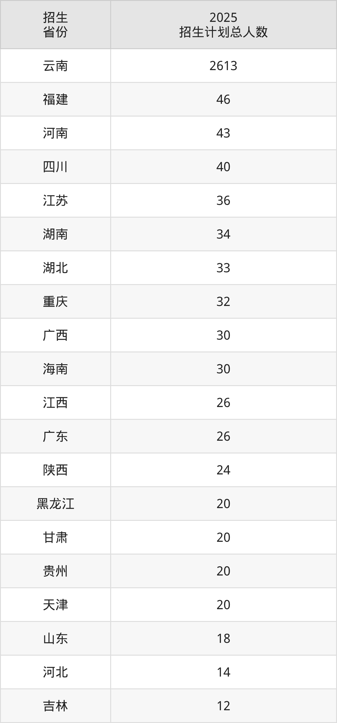 2025年红河学院面向全国24个省市开展本科招生;招生专业共40个,招生人数共3179人。2025年在云南省招生计划总人数是2613人,其中,红河学院在云南省招生人数最多的是冶金工程。红河学院在各省具体招生人数情况如下表。