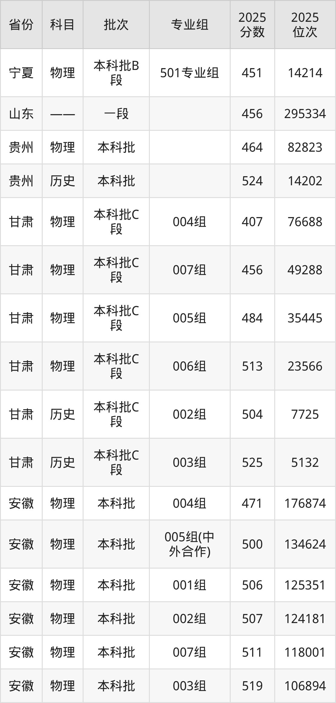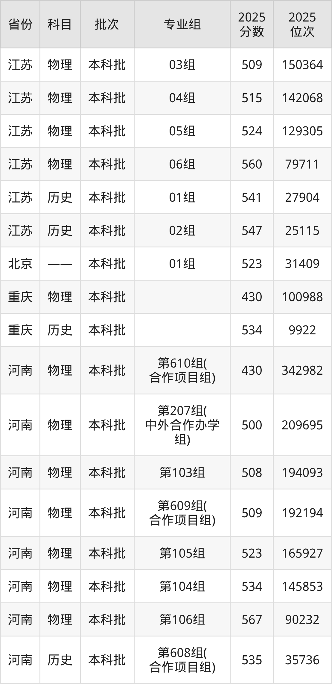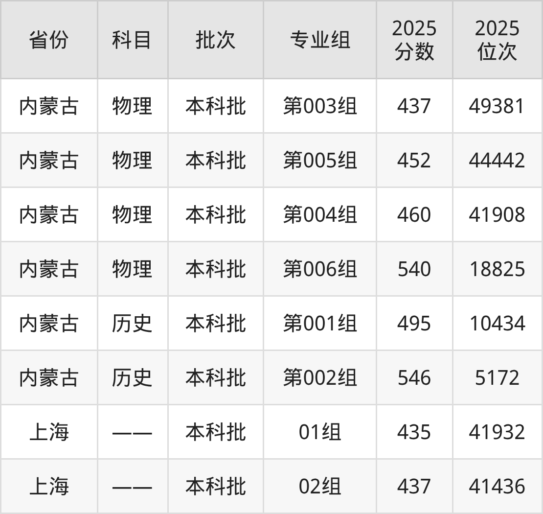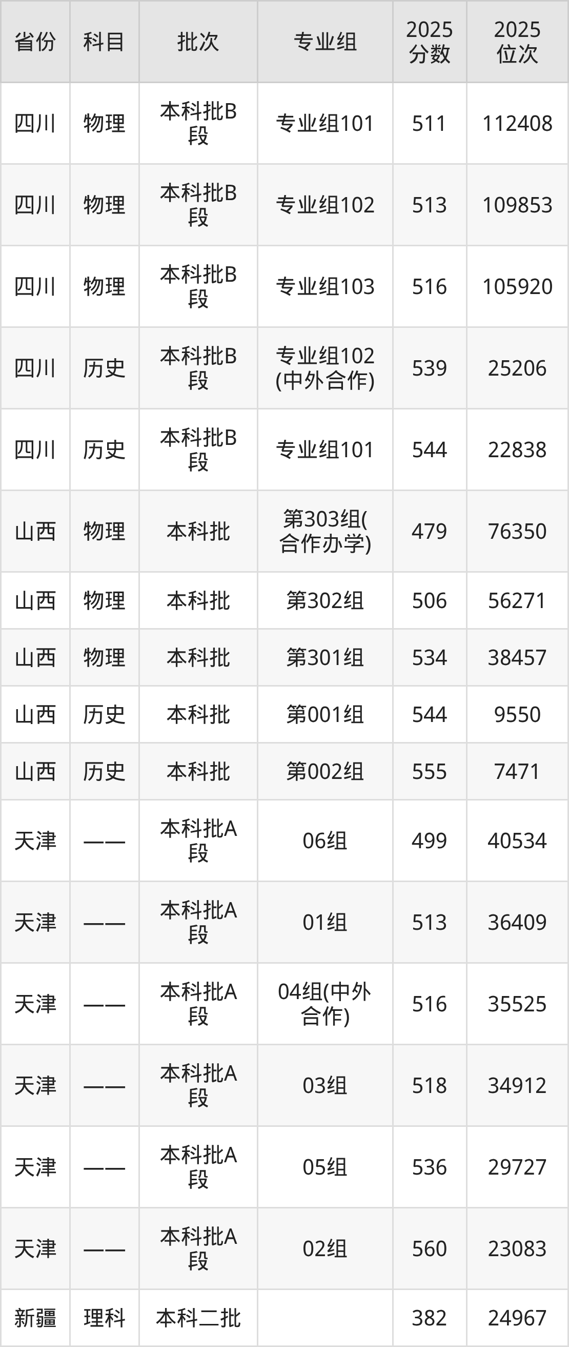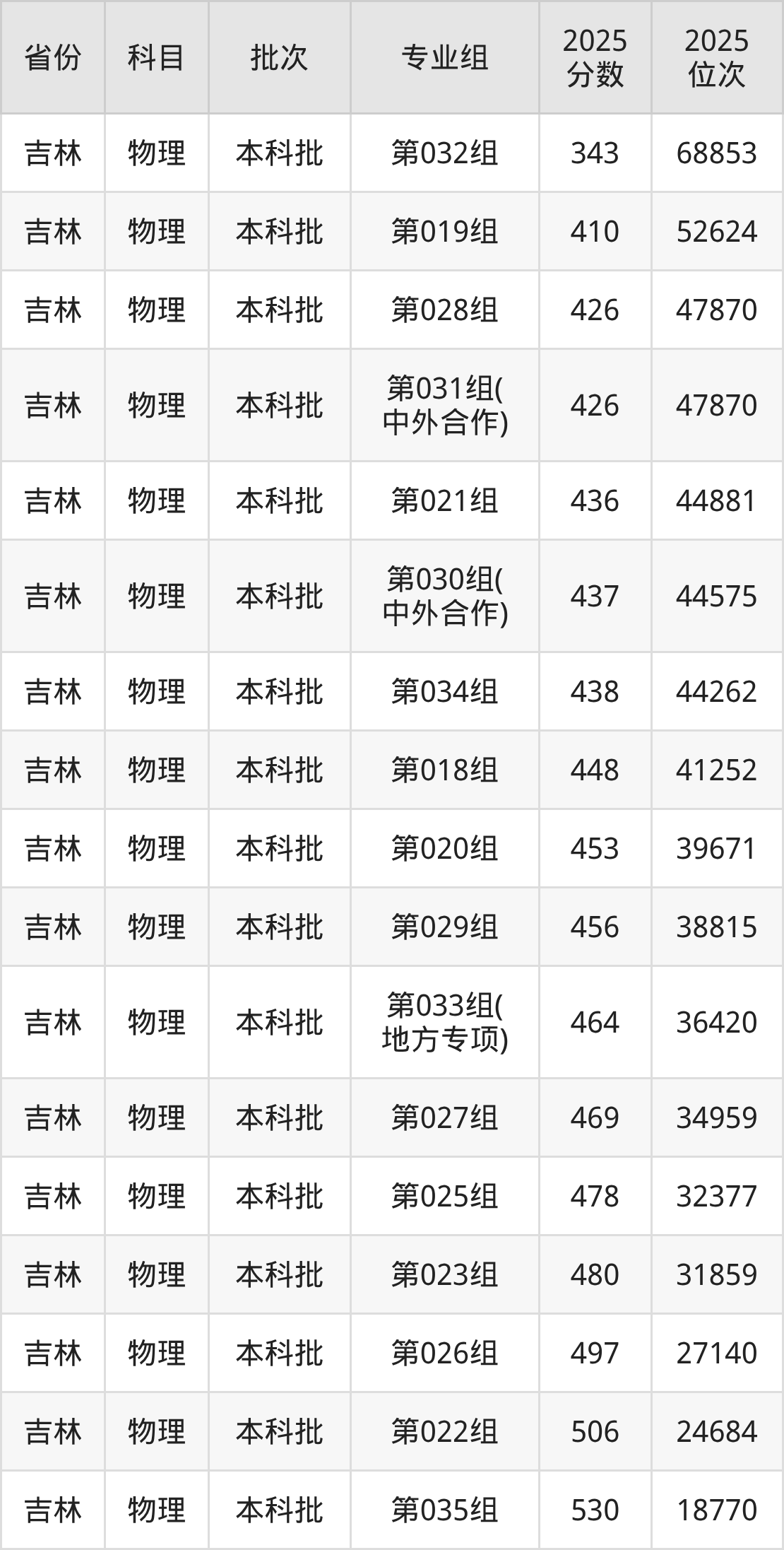 2025年在本科理科进行招生,各专业组分数线详情如下: