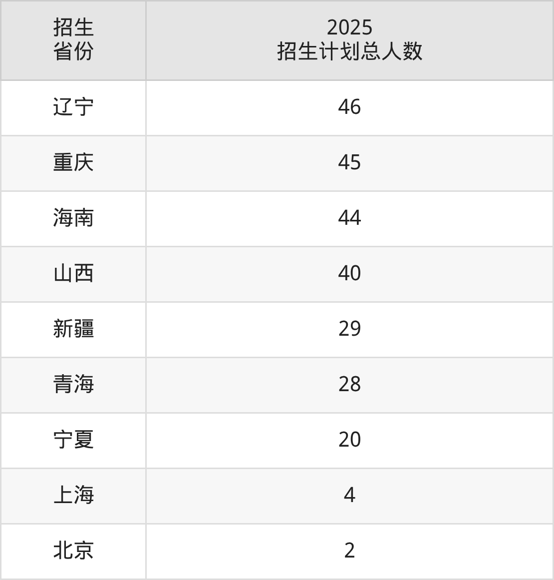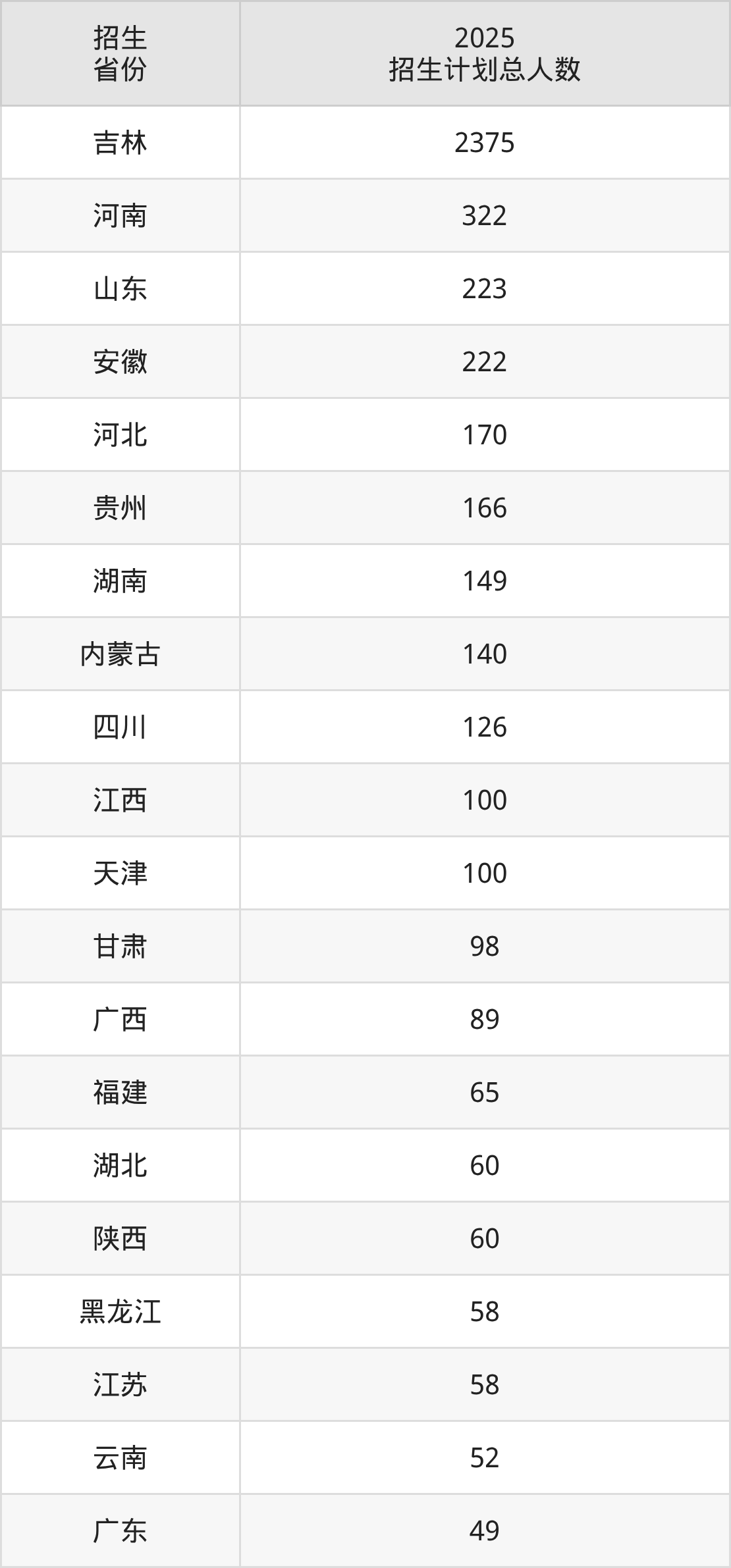 2025年北华大学面向全国29个省市开展本科招生;招生专业共53个,招生人数共4940人。2025年在吉林省招生计划总人数是2375人,其中,北华大学在吉林省招生人数最多的是护理学。北华大学在各省具体招生人数情况如下表。