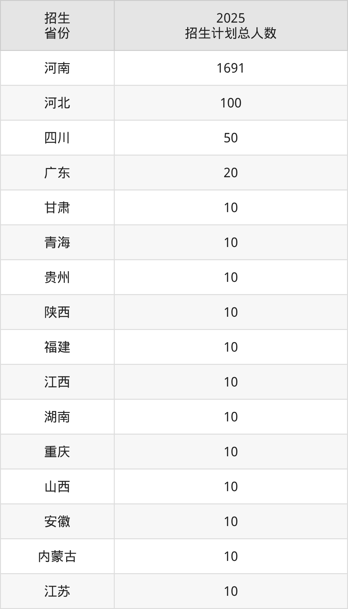 2025年河南地矿职业学院面向全国16个省市开展专科招生;招生专业共30个,招生人数共1981人。2025年在河南省招生计划总人数是1691人,其中,河南地矿职业学院在河南省招生人数最多的是信息安全技术应用。河南地矿职业学院在各省具体招生人数情况如下表。