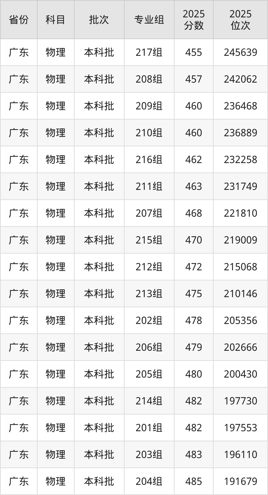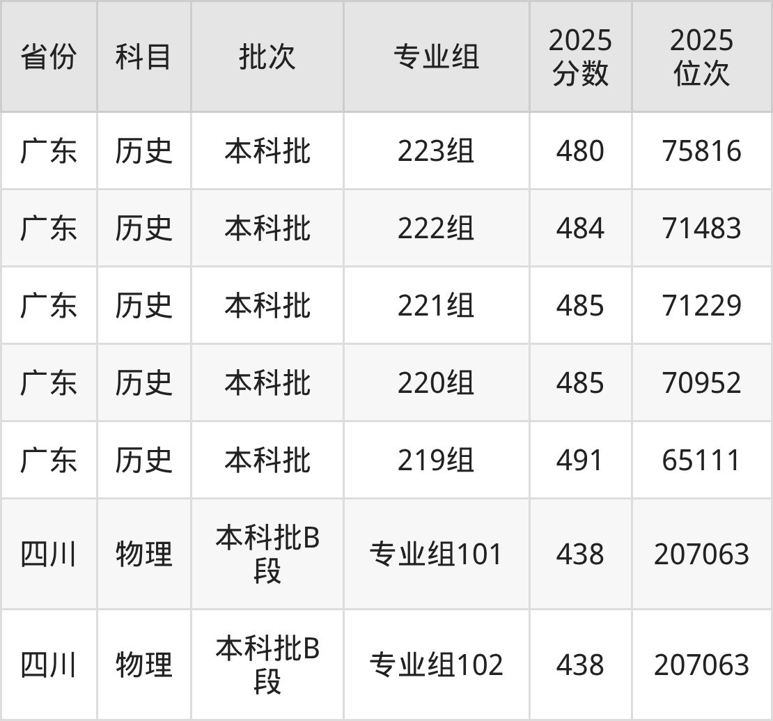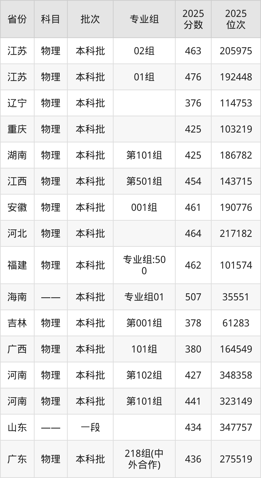 2025年在本科物理类进行招生,各专业组分数线详情如下: