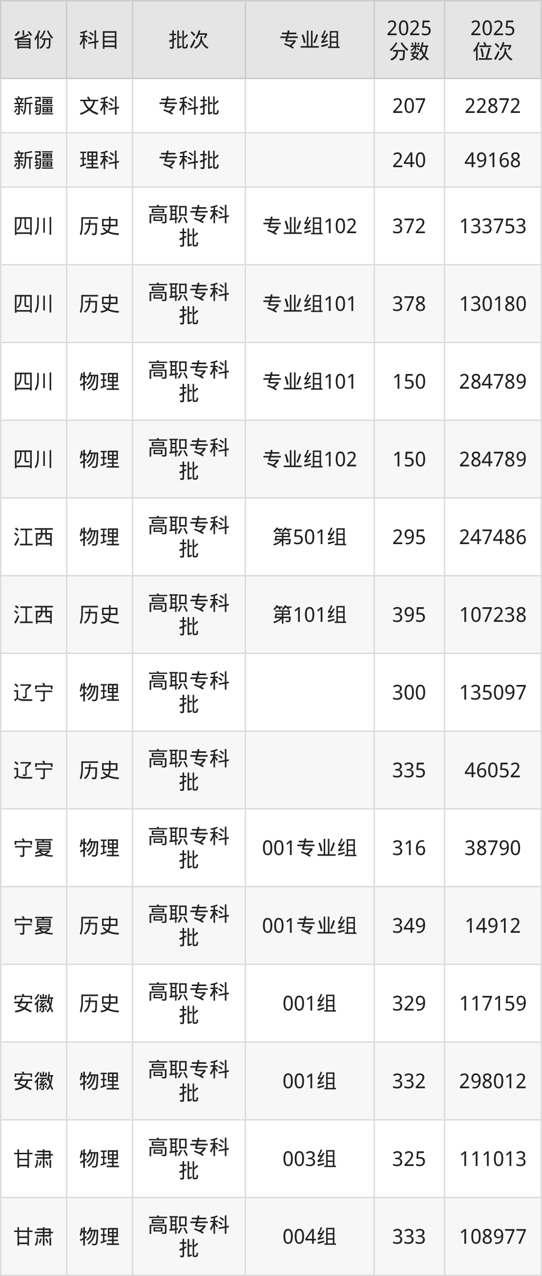 铁岭卫生职业学院专业组101:2025年投档录取最低分为378分,录取最低位次为130180名。