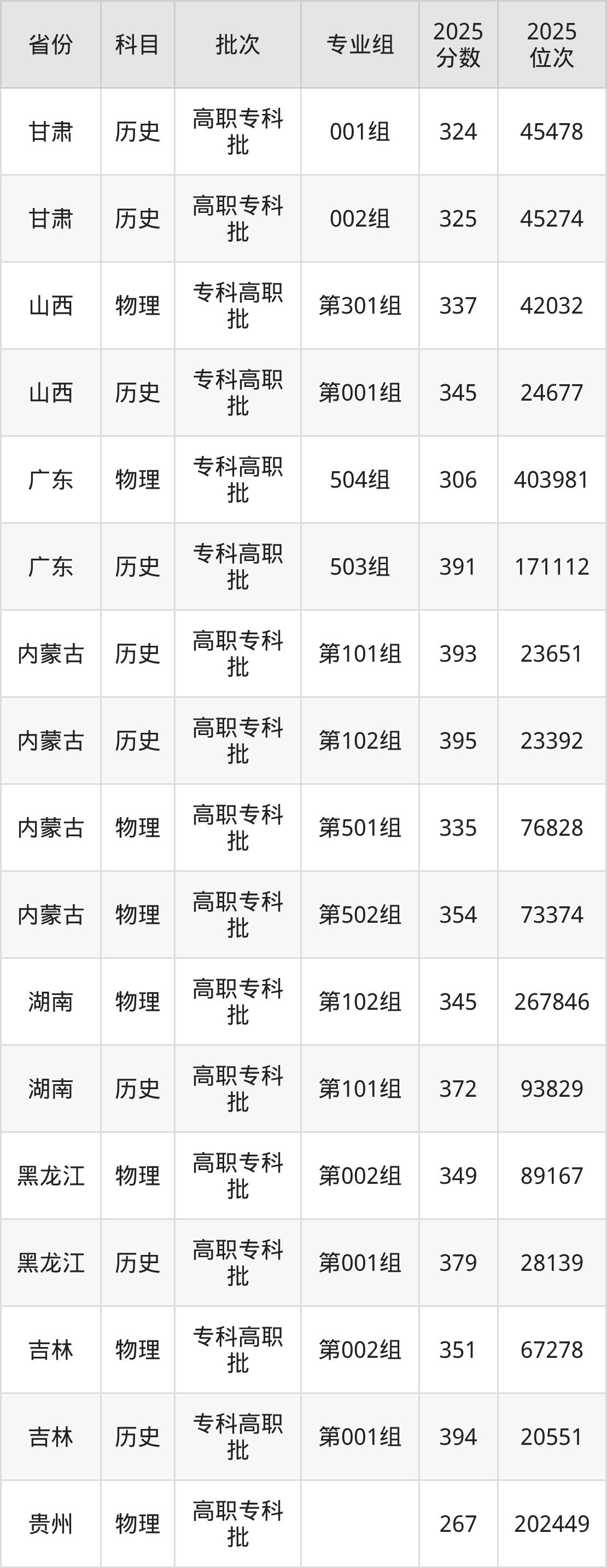 铁岭卫生职业学院003专业组:2025年投档录取最低分为325分,录取最低位次为111013名。