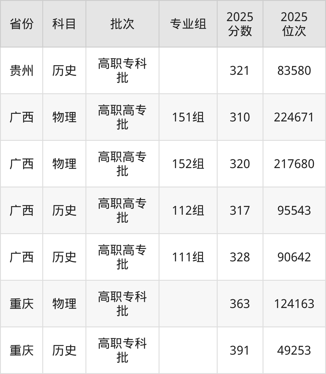 铁岭卫生职业学院001组:2025年投档录取最低分为329分,录取最低位次为117159名。