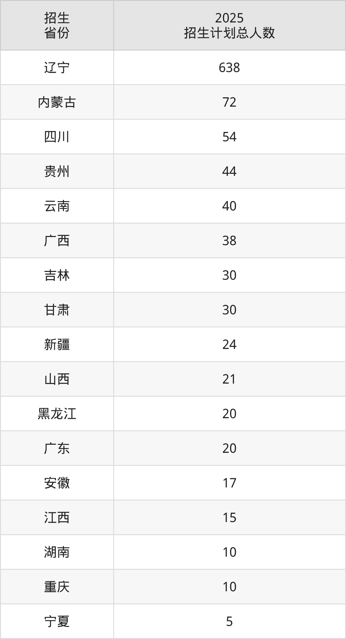 2025年铁岭卫生职业学院面向全国17个省市开展专科招生;招生专业共13个,招生人数共1088人。2025年在辽宁省招生计划总人数是638人,其中,铁岭卫生职业学院在辽宁省招生人数最多的是护理。铁岭卫生职业学院在各省具体招生人数情况如下表。